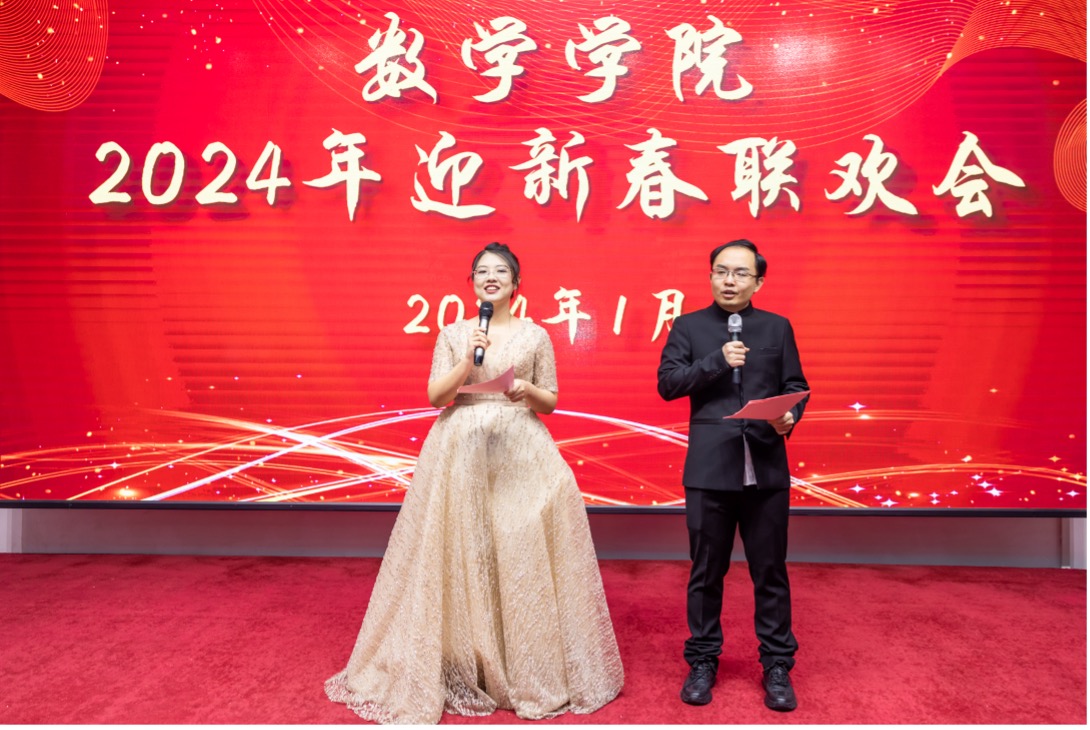 玉兔辞旧岁,瑞龙迎新春。1月10日下午,伟德国际1946“2024年迎新春联欢会”在伟德国际1946友谊会馆隆重举行。公司全体教职工欢聚一堂,共贺新春,共展宏图。本次联欢会由计算数学系吴畏和基础数学系侯帅两位老师主持。