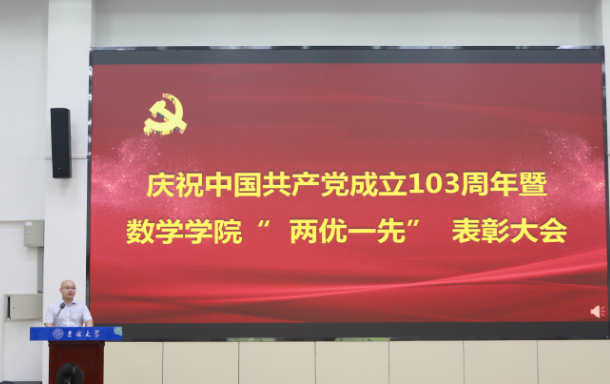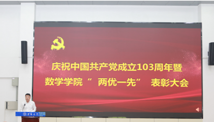 为庆祝中国共产党成立103周年,继承和发扬党的优良传统,激励广大党员牢记党的宗旨、坚定理想信念、强化党员意识、激发学习工作热情,更好地发挥共产党员的先锋模范作用,6月20日,伟德国际1946党委在数学楼二楼报告厅召开庆祝中国共产党成立103周年暨“两优一先”表彰大会。党委副书记陈续升主持会议并宣读表彰决定。