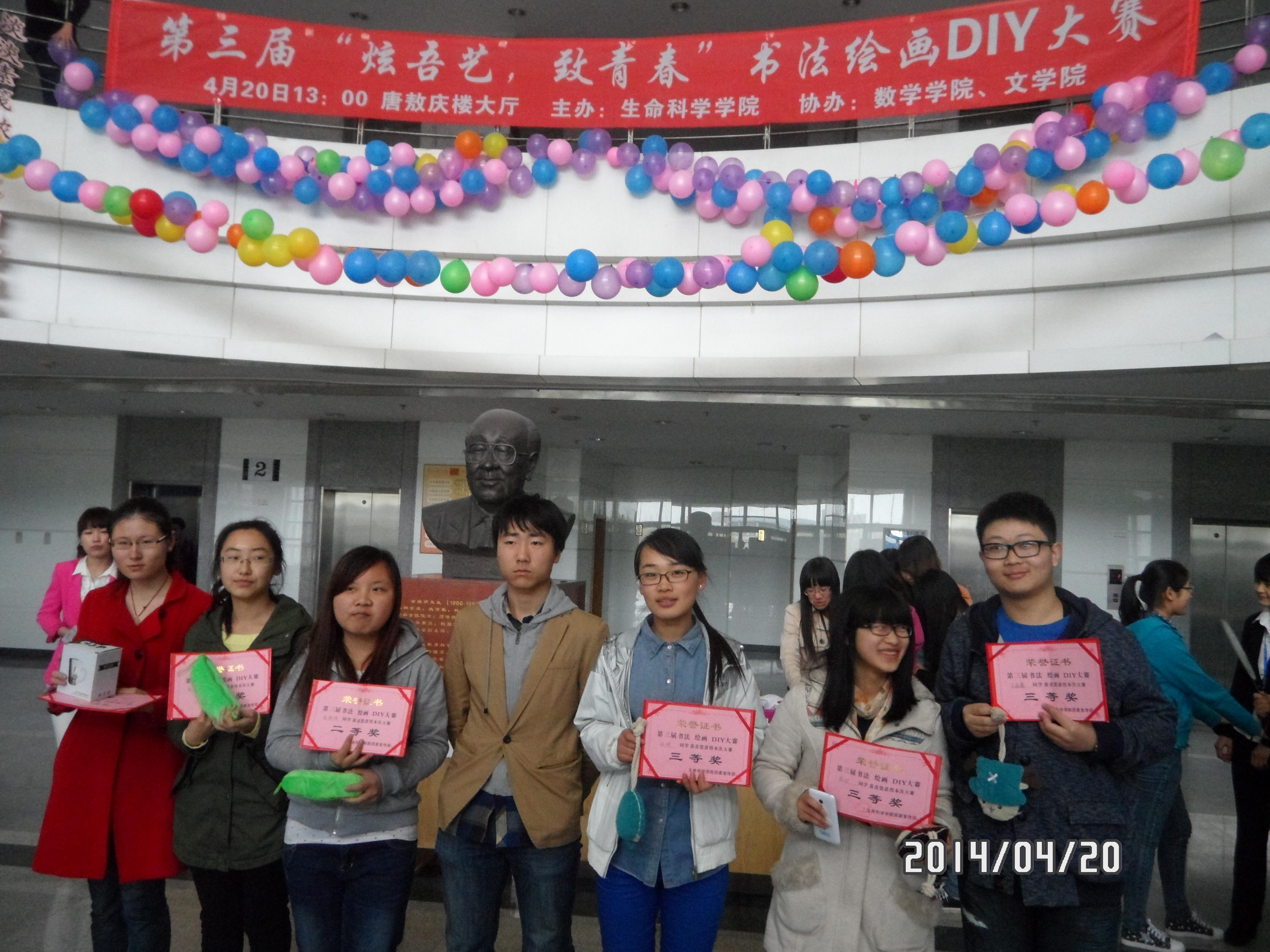 4月20日下午1:00主题为“炫吾艺,致青春”的第四届书法绘画DIY创意大赛在唐敖庆楼大厅隆重举行。本次活动由生命科学公司,伟德国际1946和文公司三个公司的团委宣传部联合举办,有数十名同学参加,同场竞技。