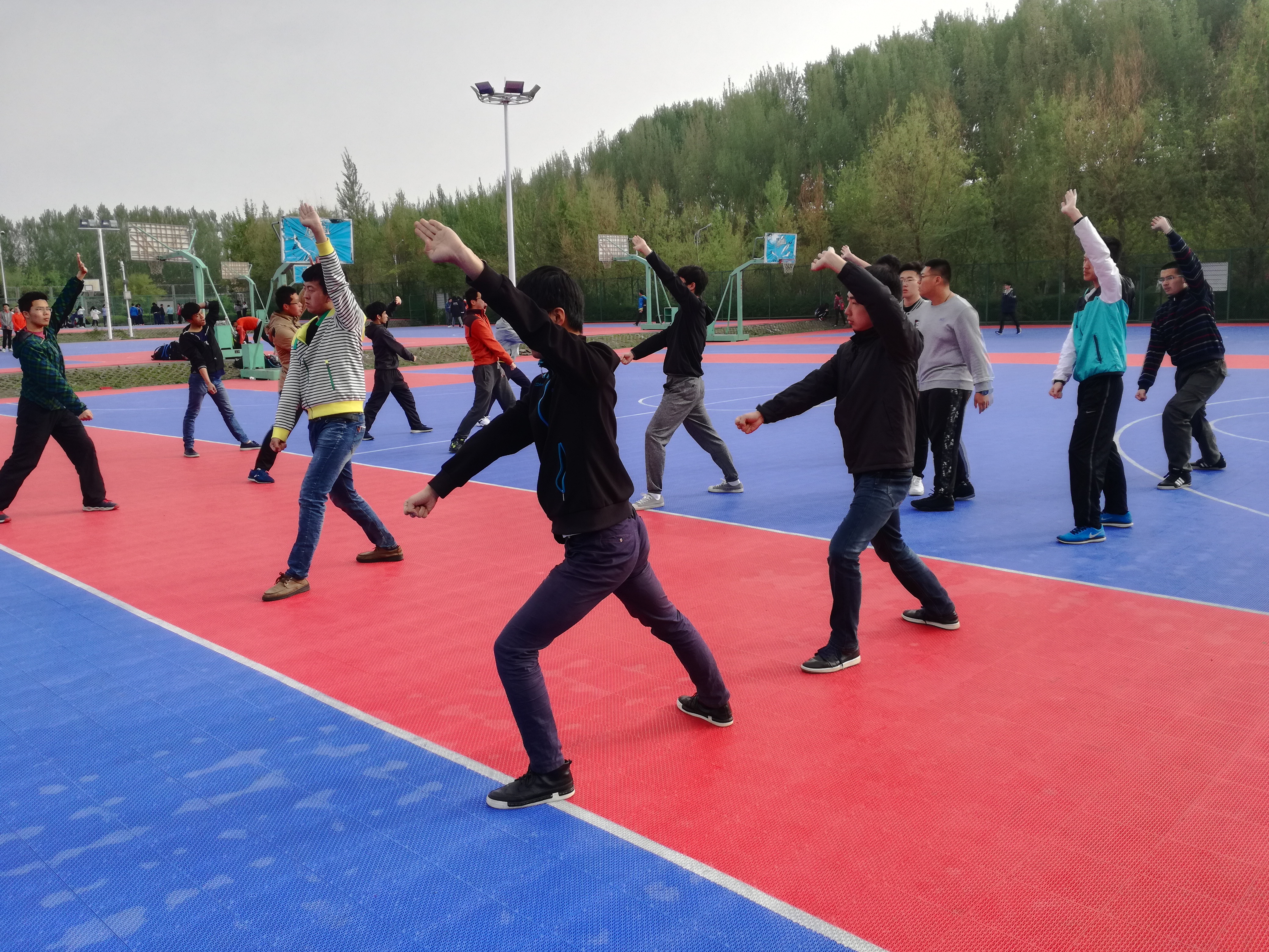 每早六点,参加太极拳和三路长拳训练的同学们准时到达训练场地。接着,在员工会女综部和生管会的带领下开始训练。一边是以柔著称的太极,一边是以刚著称的三路长拳。相比已经学了一学期的长拳,太极拳是大多数同学之前从未接触过的。但在“小老师们”的指导下,大家很快就能领悟到其精髓,打起拳来更是一招一式绝不含糊。大舞和广播体操一般在晚上排练。虽说初高中也学过类似的广播体操,但这一套广播体操更能凸显出老员工的朝气。大舞的排练现场,气氛更是十分活跃。律动的音乐加上同学们优美的舞姿,无一不展现出青春的活力。