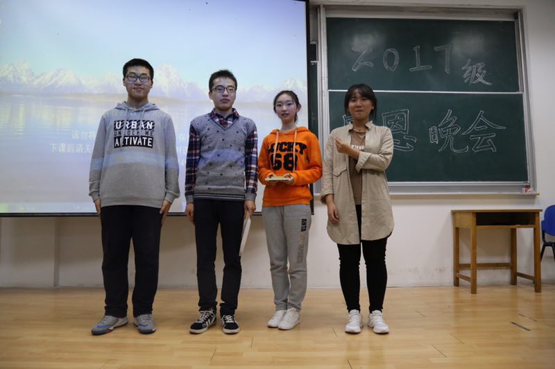在短暂的开场白后,晚会正式开始,主持人介绍了到场的各位嘉宾。随后,由崔帅老师发表讲话,与大家分享了他和代班代团的故事,向代班代团们表达了感谢之情。接着,17级各班同学献上了精彩的节目和精心准备的礼物,中间穿插播放了各班同学送给代班代团的视频,各位代班代团也送上了对新生们真挚的祝福,在游戏环节中,你画我猜展现了代班代团之间的默契。现场夹杂着欢笑和感动,最后伴随着一首《暖暖》,晚会圆满落幕。