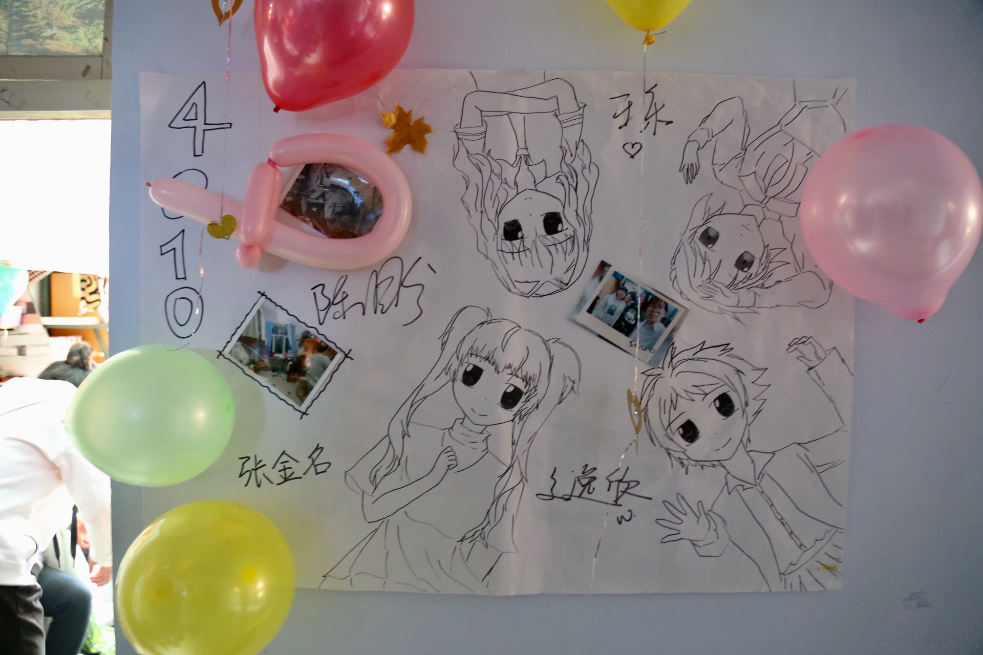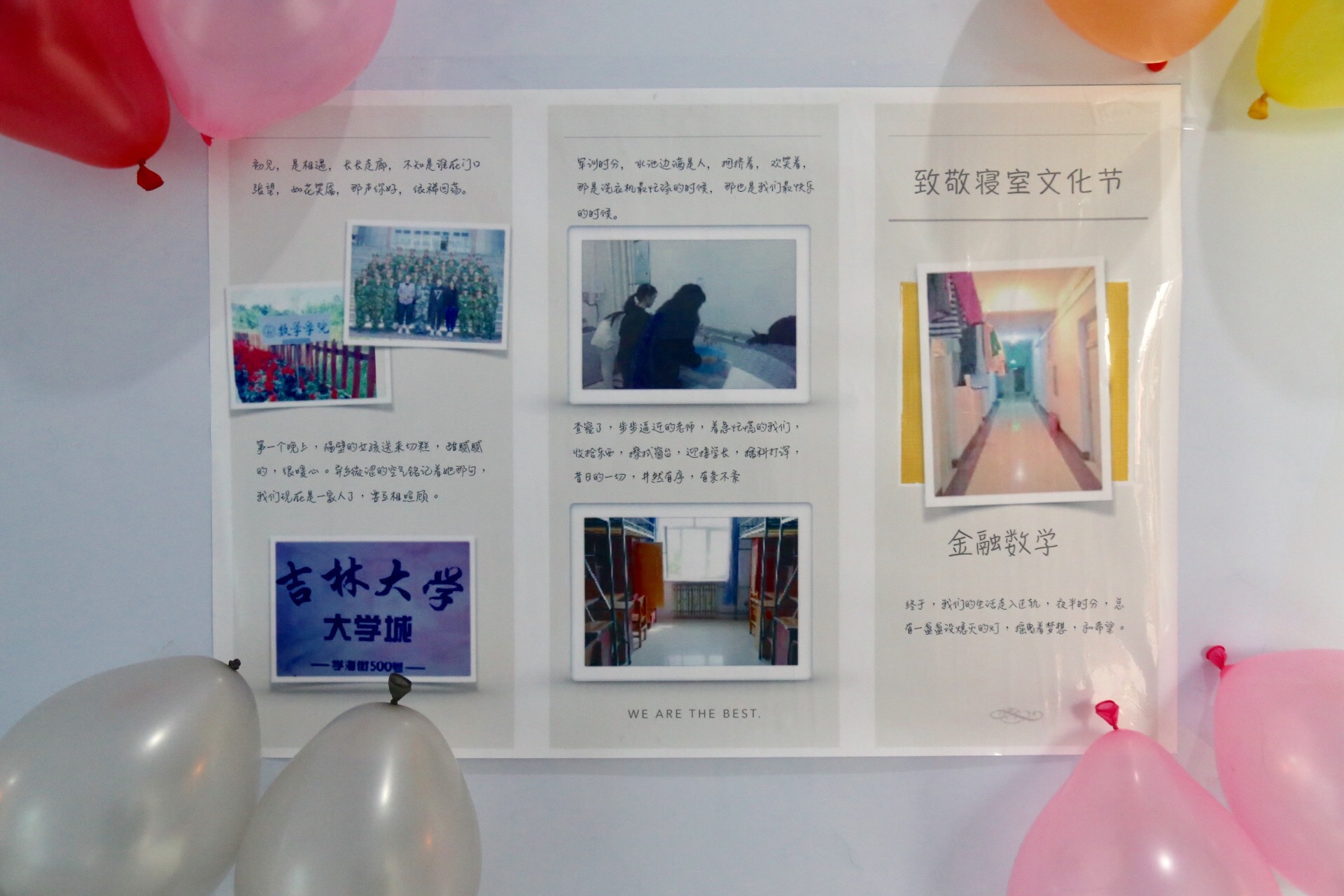 ,有的寝室将气球贴满了天花板,在阳光的影射下显得格外闪耀,有的寝室把千纸鹤串起来,做成了船的形状,高高挂起,也是一道亮丽的风景线。大部分寝室还表演了节目,同学们弹着吉他唱着歌,放着音乐伴着舞,气氛火热,大家都兴致盎然。