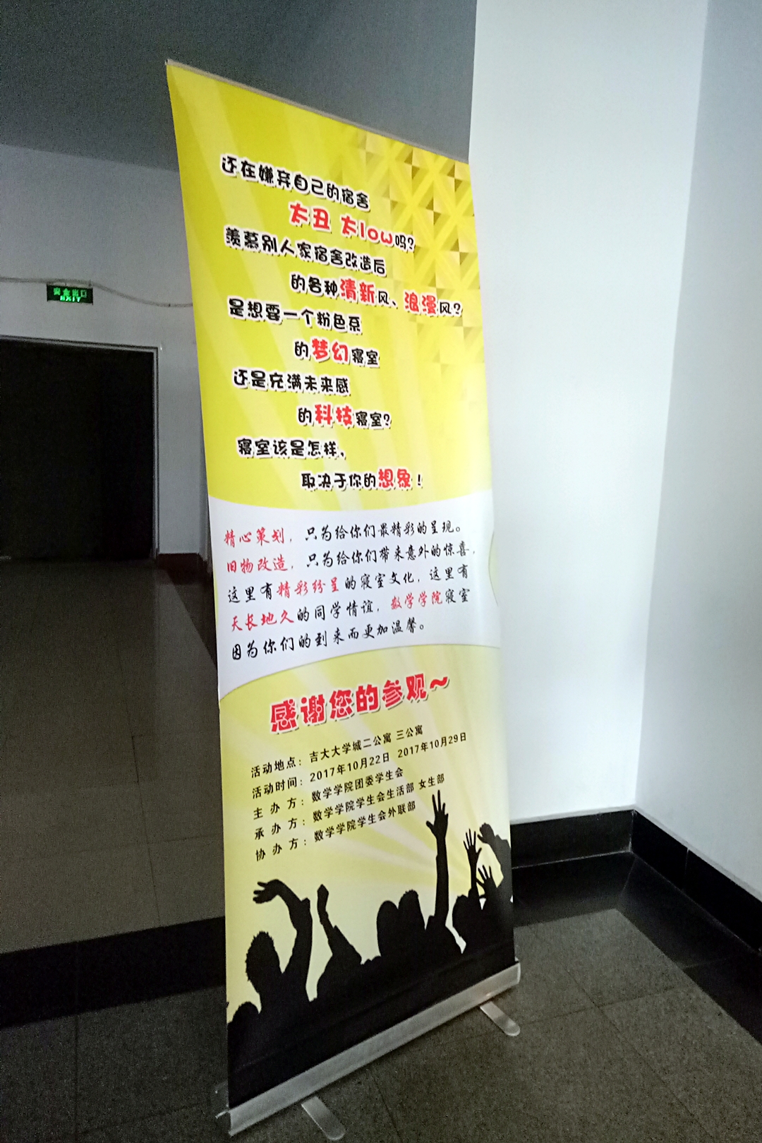 沿着走廊一路前行,两侧是精心绘画的壁纸,涵盖了整个吉大的风貌,展现了伟德国际1946丰富多彩的文化生活。在经过女生部和生活部部员的介绍以后,评委和老师们开始依次参观各个寝室,大家的寝室都整洁干净,各有特色。同学们分别介绍了他们寝室的设计理念,还简单讲解了一下他们平时的寝室生活以及室友之间的趣事。最后,寝室文化节在同学们的欢声笑语中结束了。