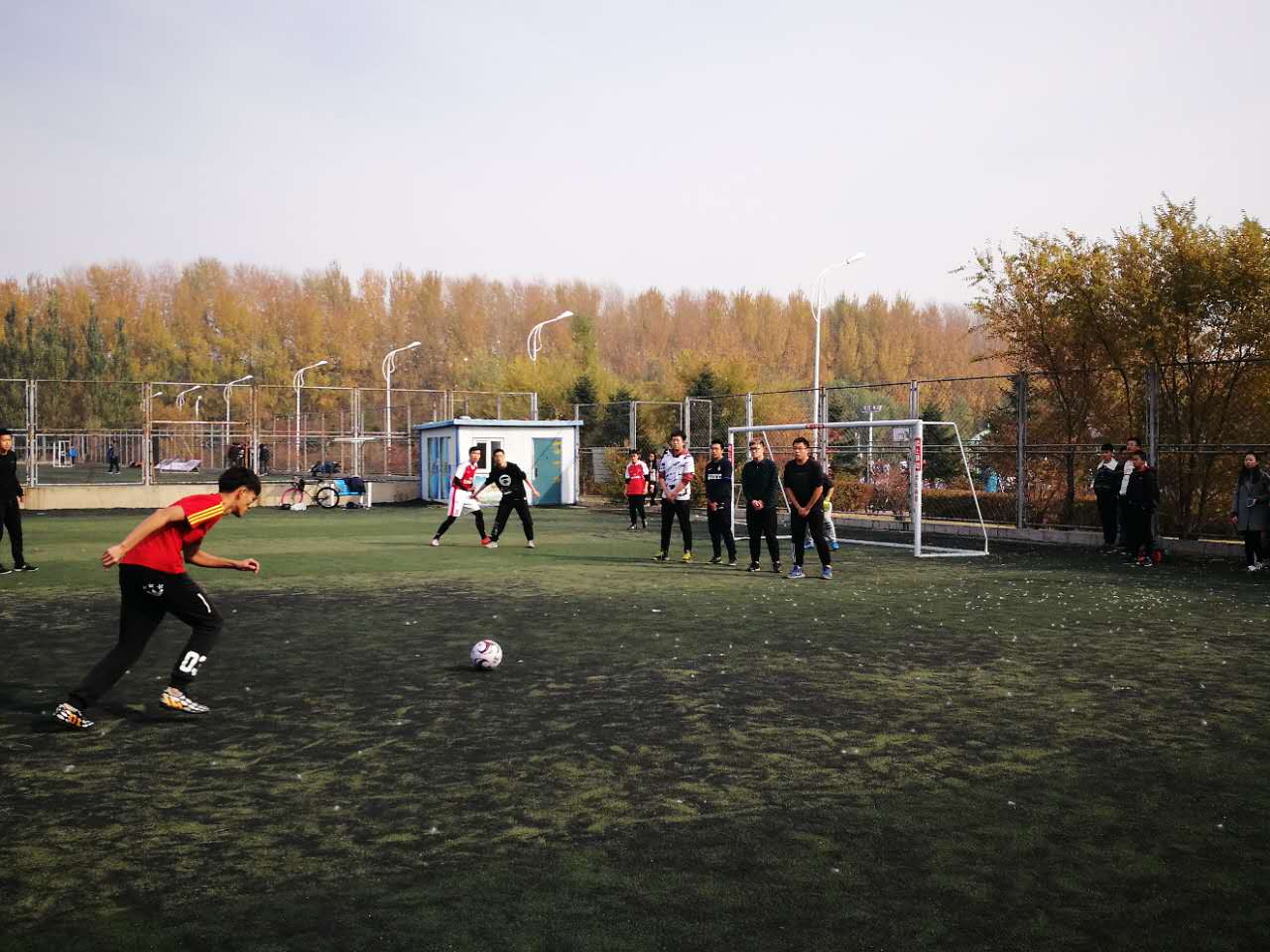 本次比赛共有27支参赛队伍,分成A,B,C,D,E,F,G七个小组,每组小组赛阶段采用单循环赛制,小组赛结束后统计积分,根据积分高低排名;取七组各小组第一及老师组小组第二进入八强淘汰赛阶段,最终决出冠亚季军。足球场上,队员们尽力拼搏,奔跑如离弦之箭,喊声振奋人心。倒了,站起来;伤了,无所谓;进了,欢呼了。青春的活力在足球场上迸发,没有拘束,没有忧虑,欢声笑语才是青春的主旋律。流汗了,又风干了;流血了,又凝固了。球场上除了和足球在一起奔跑,一切都不在乎。