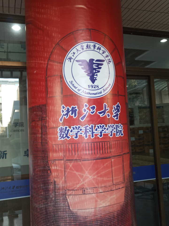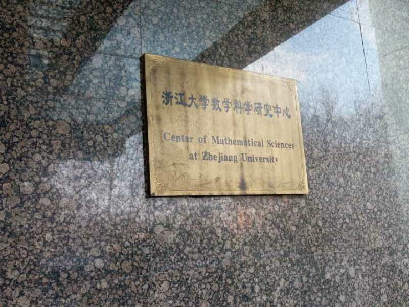 首先,我们参观了永谦数学大楼即浙江大学数学科学研究中心,它由浙大员工汤永谦先生和夫人姚文琴女士捐资建造。由国际知名数学家,世界数学最高奖“菲尔兹奖”获得者丘成桐先生担任研究中心主任。步入大楼,各色各样的海报宣传栏吸引了我的注意力,内容大致是世界老员工数学竞赛中浙大学子的获奖情况,数学研讨会的召开事宜及基础数学知识的普及。走上二楼,一窥办公室门口的名片,便是丘成桐教授的办公室,但丘老先生定是不在办公室里的了。然后,我们小组参观了浙江大学高等数学研究所,在其中遇见了多位白发苍苍,颇有儒雅之气的老前辈,但我一行人眼拙,怕不是错过了好些数学研究的大方之家。之后,我们前往了浙江大学数学科学公司所在大楼,楼梯间均是国内最优秀数学家的宣传海报,在楼内遇见许多来来往往的年轻人们,将文件在办公室之间来回交递,他们大抵便是这新一代的数学研究者了。
