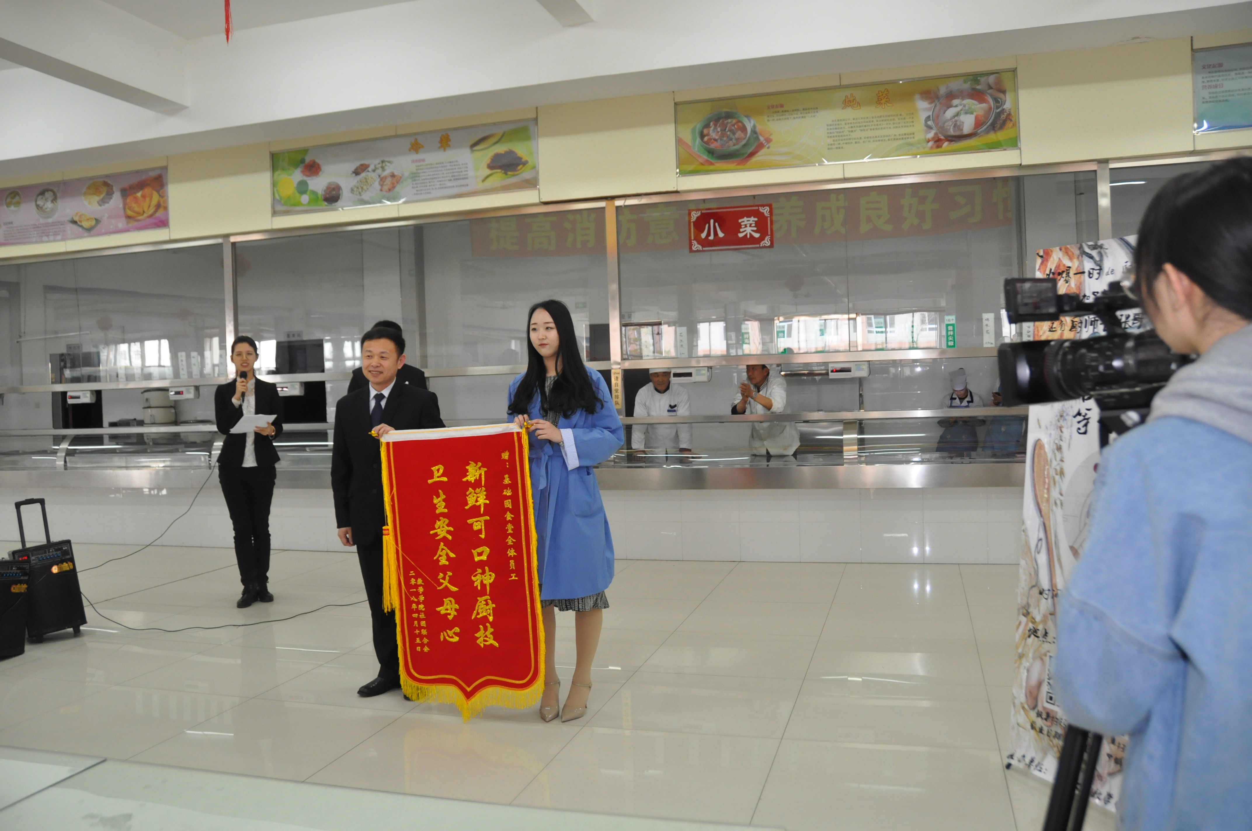 在JYC街舞社团热情洋溢的开场舞之后,主持人一一介绍了在场的评审嘉宾。除了员工会、团委、社联的各位主席和书记外,我们还请到了基础园餐厅经理、创新哥、友谊会馆厨师长以及吉大拉面哥等各位嘉宾。东亚经贸新闻,新文化报以及头条新闻,吉大校报和吉大电视台来现场采访报道。社联主席李玉涵为全体员工送上锦旗后,基础园经理带领各位嘉宾及观众参观了后厨以及员工宿舍。宿舍窗明几净,后厨干净卫生,这些都为食堂的食品安全提供了有力保障。