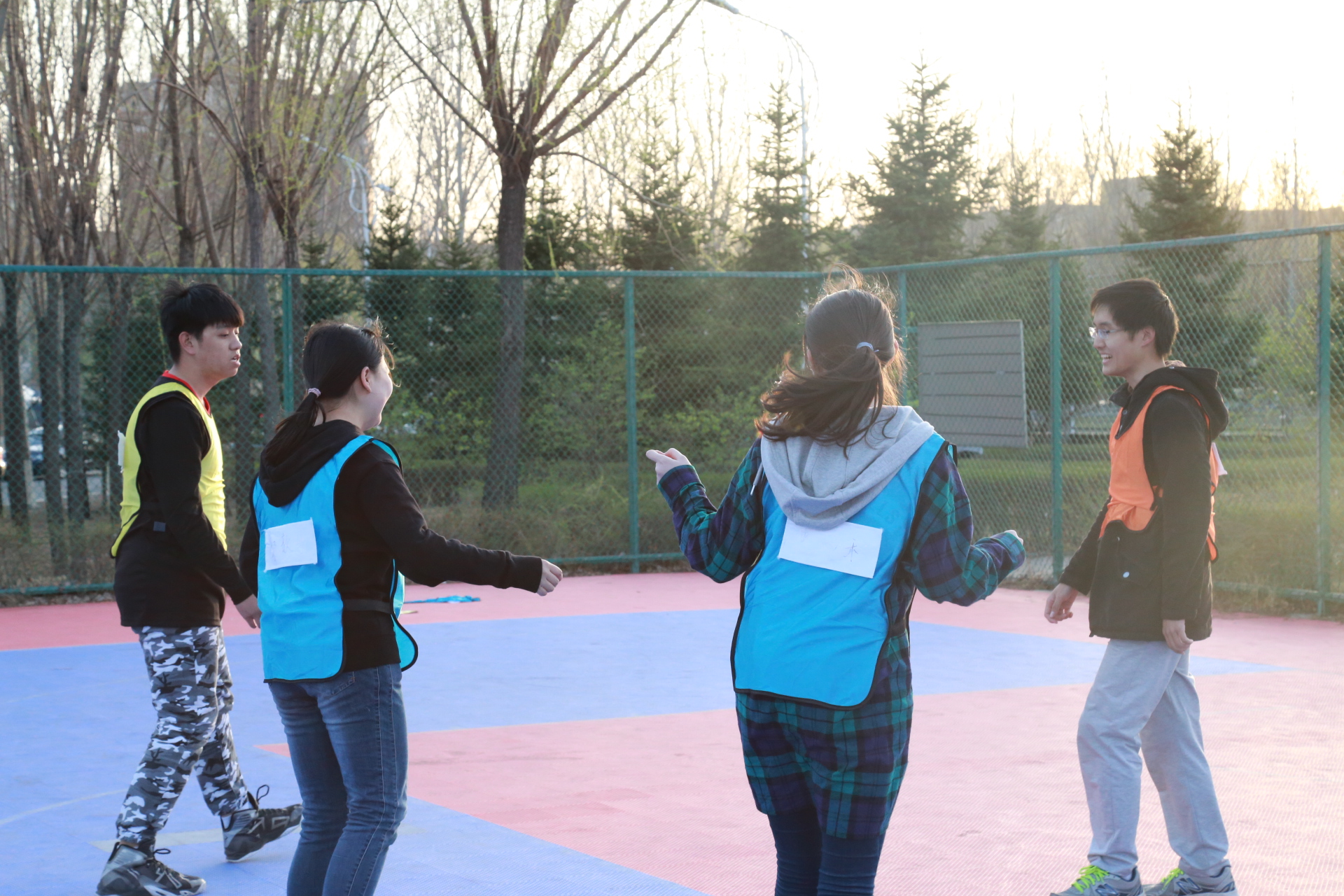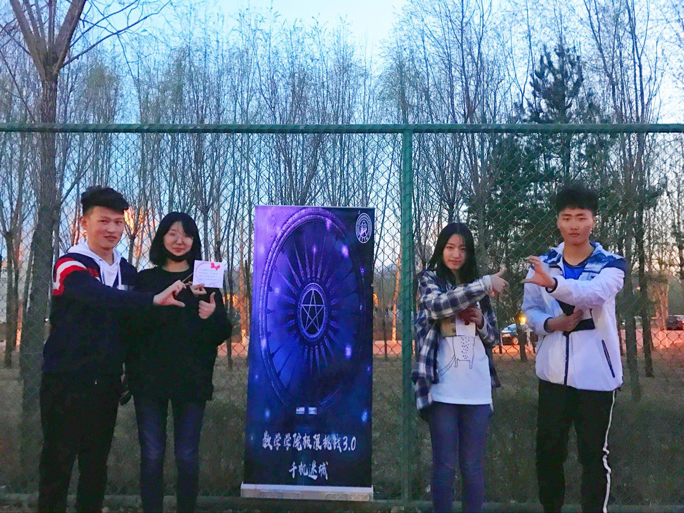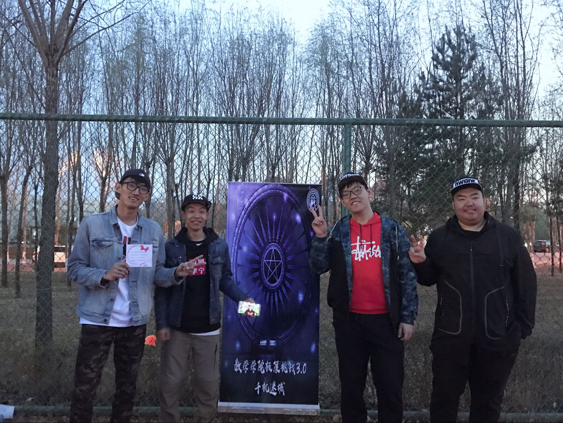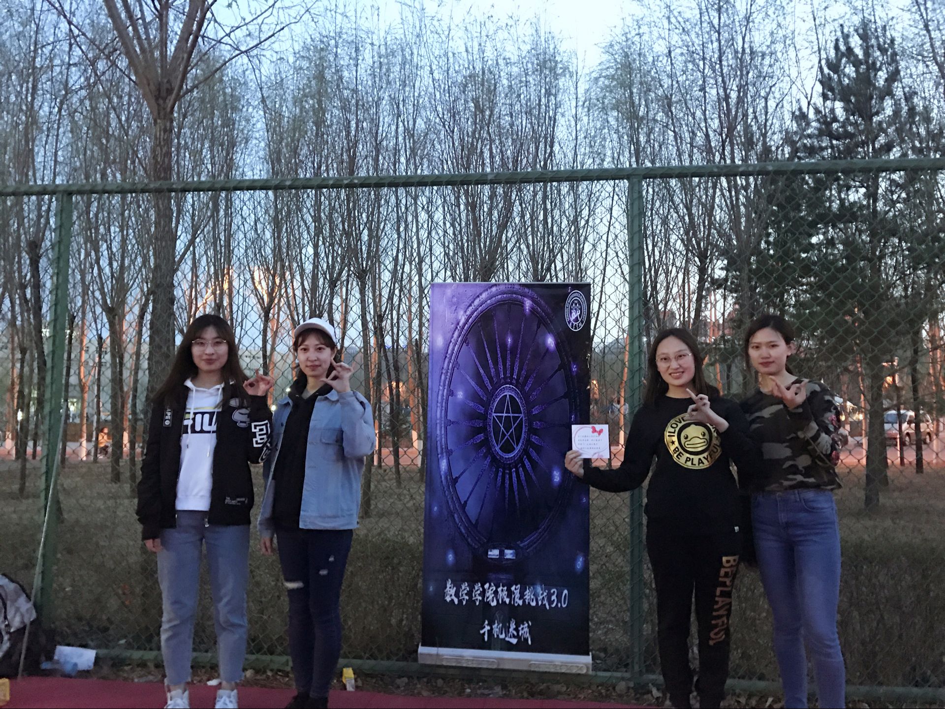 下午一点整,活动正式开始。此次活动以人工智能统治世界为背景,要求参赛队员们逃出被人工智能掌控的“虚拟世界”,掌握算法,拯救人类。经过前期精巧的设计,主办方以生动的故事为主线,分别在清湖、轮滑场、日新楼、体育场、篮球场安排了兼具趣味性与挑战性的任务。在清湖,参赛人员集合,由主持人说明游戏背景,大家开始了极限挑战之旅;在轮滑场,参赛队员们开始“热身阶段”,进行“背对背拥抱”,“8字跳跳跳”,“盲人摸象”游戏,完成了对彼此间默契程度的挑战;在日新楼,同学们进行了“恐怖黑箱”、“旋风摄影师”、“数字捕手”游戏,通过将手伸入黑箱猜测箱内物体,根据下发的图片信息找到拍摄地点,找到菜单上菜品价格来获得游戏线索;在体育场,大家默契配合,一同完成了吸管传纸环的比拼,绑腿走路进行擂台大拍照,一人背一人做气球杀手;在篮球场,参赛成员先折返跑并模仿动作,后在指压板上完成指定任务,最终的撕名牌活动使游戏进入高潮,大家全身心投入,为此次活动画上了圆满的句号。最后“平民窟女团”、“ 小猪佩琪说的队 。