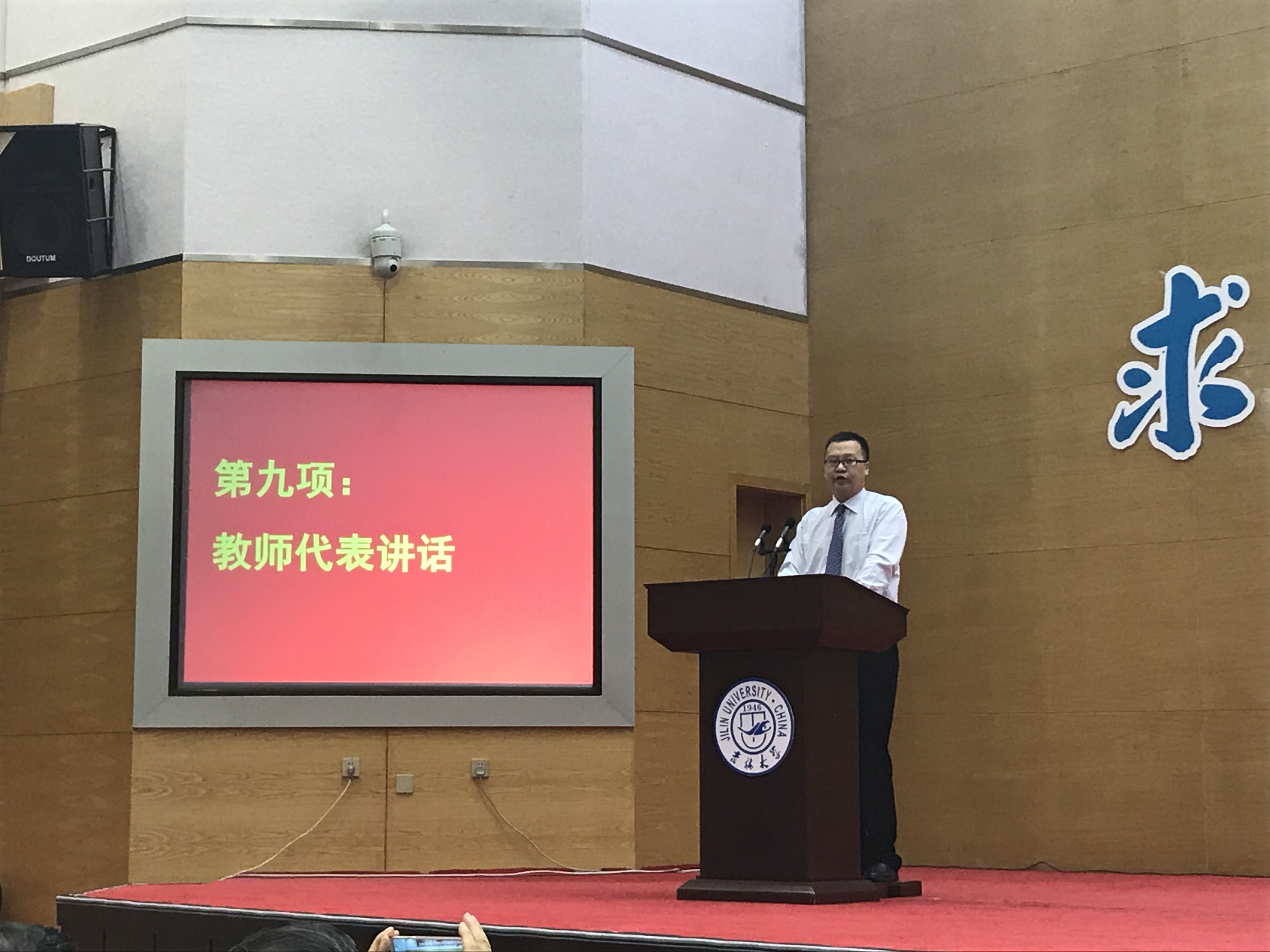 随后,伟德国际1946十佳老员工高溪远同学代表毕业生发言,韩玉柱副教授作为教师代表为毕业生送上祝福。最后,李辉来经理为毕业典礼致辞,向2018届毕业生提出了殷切希望,希望从吉大走出去的员工,能以更加博大的胸怀和包容的精神,能以改变世界的梦想力量和魂魄,成为伟大时代宏伟事业的缔造者和开拓者!