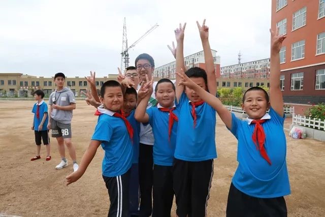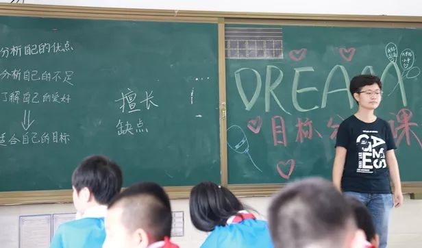 这是支教团在营城子中心校的最后一天。支教团的队员们都表示,时间过的太快,转眼就要离开,此行,短暂而难忘,一定要上好最后一天的课。这一天的最后一堂课是目标分享课,队员先让孩子们在之前折的手工课作品上写下自己的优缺点,写下自己长大以后想做什么,然后与大家分享。孩子们的梦想有科学家、航天员、老师、主持人、演说家等等,那模样可真像支教队员们小时候的自己。队长赵玉冰也写下了自己的愿望:希望孩子们的梦想都成真。同学们一起喊出了自己的梦想,并把承载梦想的那张纸粘在黑板上,最后所有人在梦想黑板前合影留念。经过这些天的相处,支教队员们早已融入孩子们之中。看到他们可爱的笑容,一切尽在不言中。