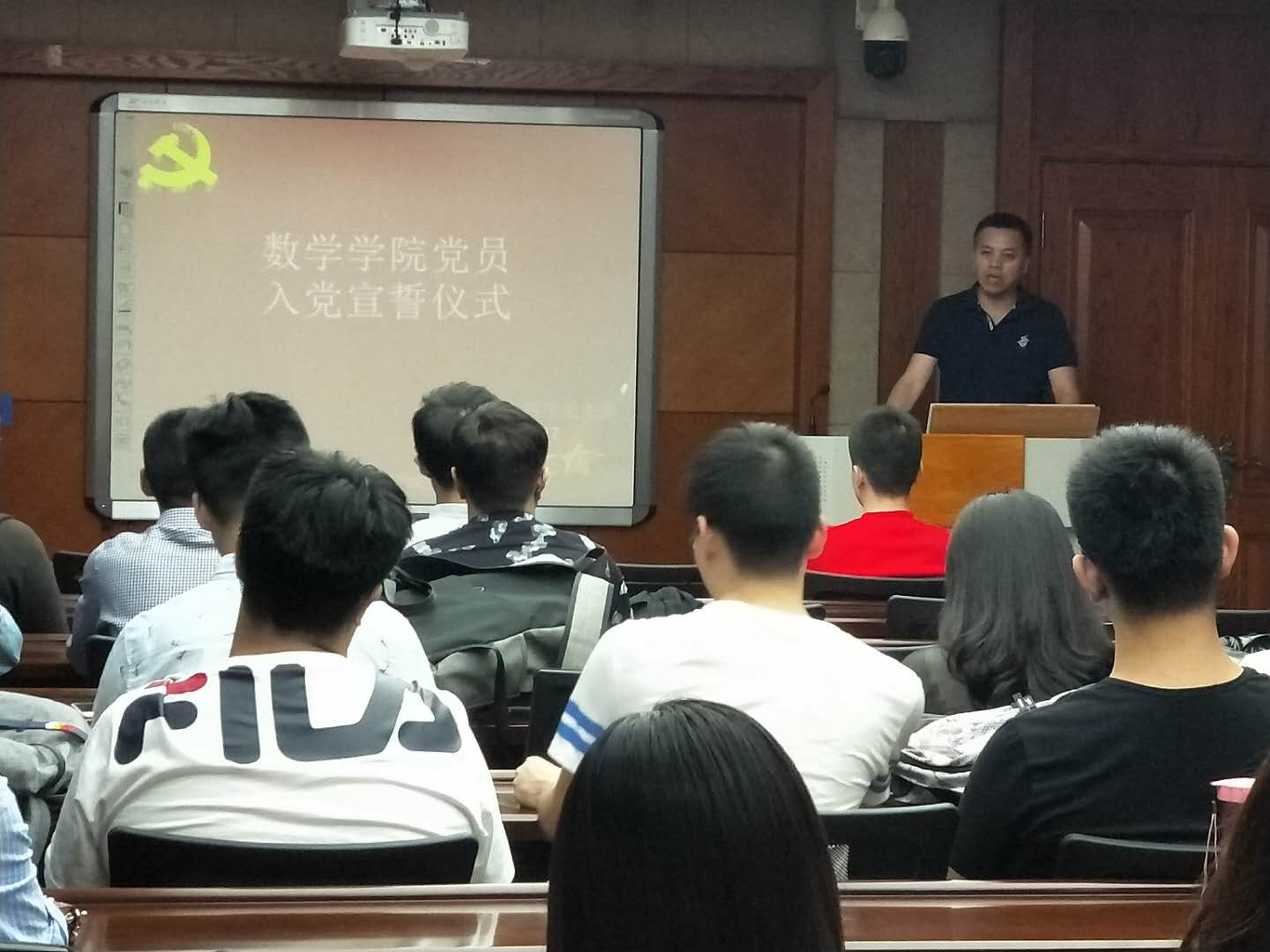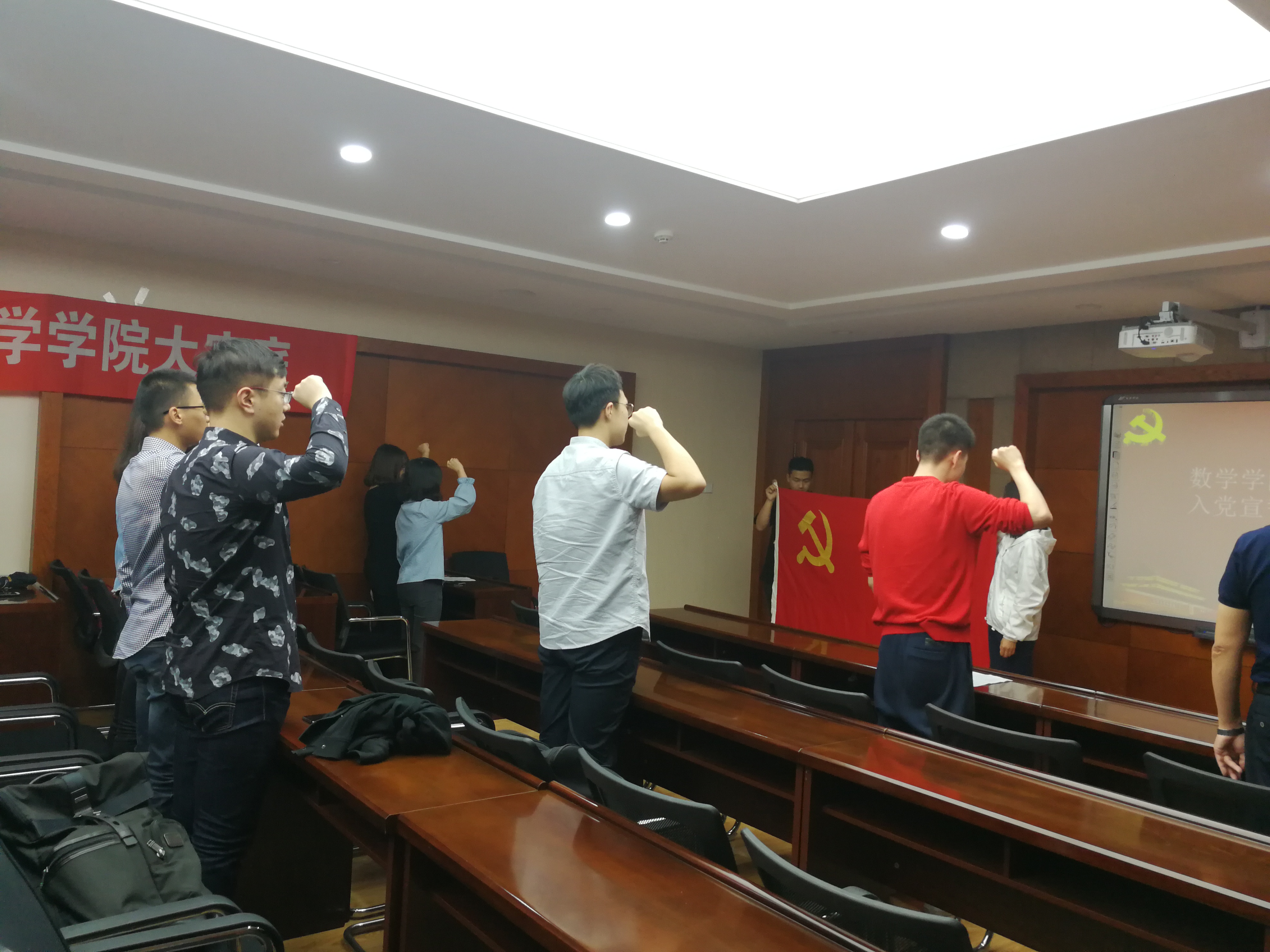 2018年8月27日中午,伟德国际1946本科生党支部组织新入党的党员在数学楼一楼报告厅举行入党宣誓仪式。参加此次宣誓仪式的有伟德国际1946党委副书记范庆文教授,本科生党支部书记李庚和本科生第一支部第二支部共37名同学。