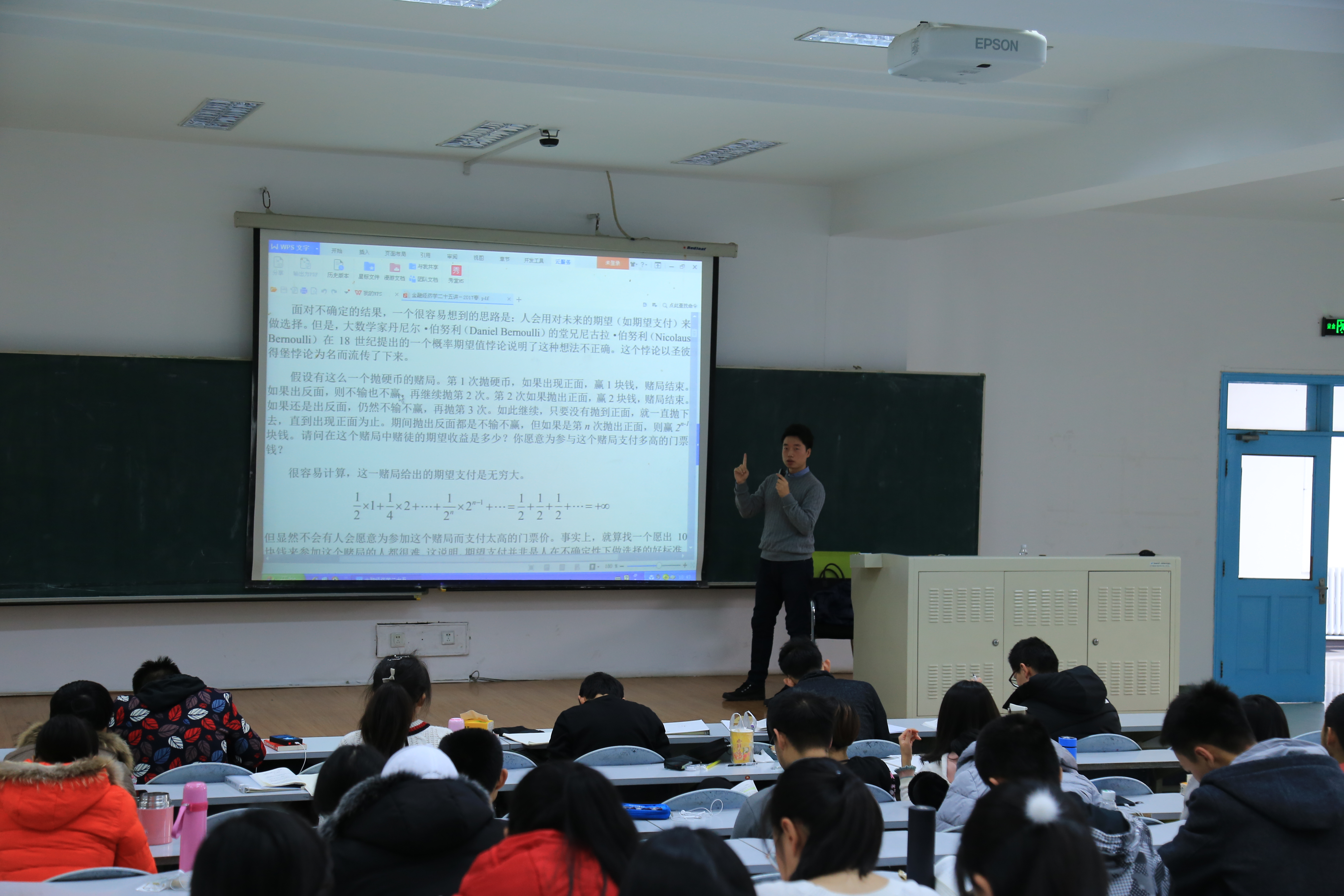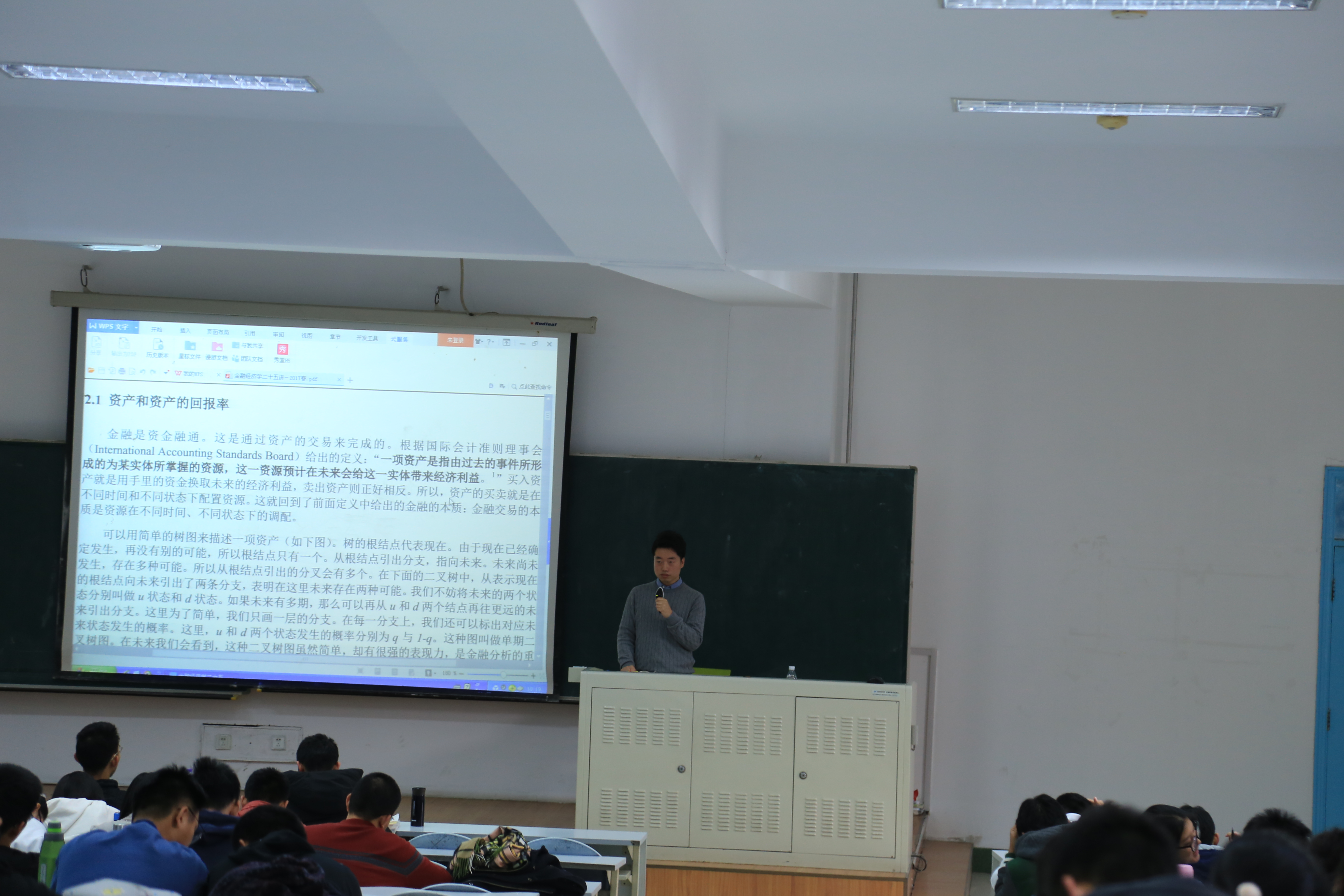 为了激发员工对学习数学的兴趣,提高员工数学思维能力和创造力,促进师生间的学术交流,伟德国际1946团委社会实践部于2018年11月17日上午10:00在三教八阶举行了“Math-talk人生启航系列大讲堂第十三讲”——金融经济学导论。本次活动有幸由请到了伟德国际1946杨程博老师为同学们带来这次讲座。伟德国际19462018级全体同学参加了此次活动。