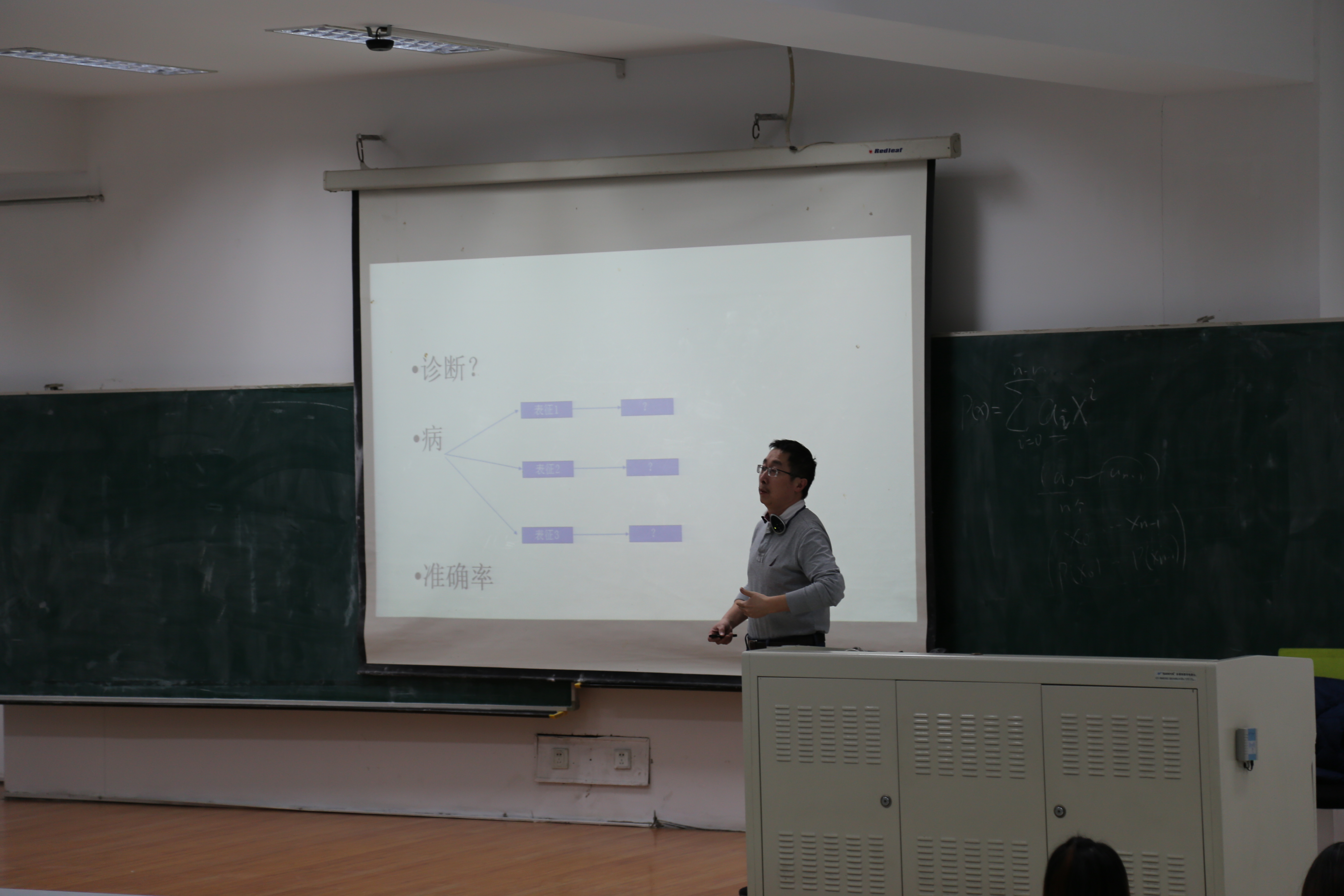 赵老师主要向员工介绍了统计学在医学领域的应用。在讲座的第一部分,赵老师主要由三个方面展开,分别是:癌症的预防、检查和治疗。比如在介绍癌症的检查时,赵老师就提到了在癌症的检查过程中统计学发挥的作用。人体的医学表征有很多种,比如心率、血压、各种功能细胞的数量等,但是有哪一种表征能够预示癌症的病发呢?科学家通过对特殊人群身体医学表征的调查,应用统计学的方法进行数据统计,总结出了预示癌症的医学表征。