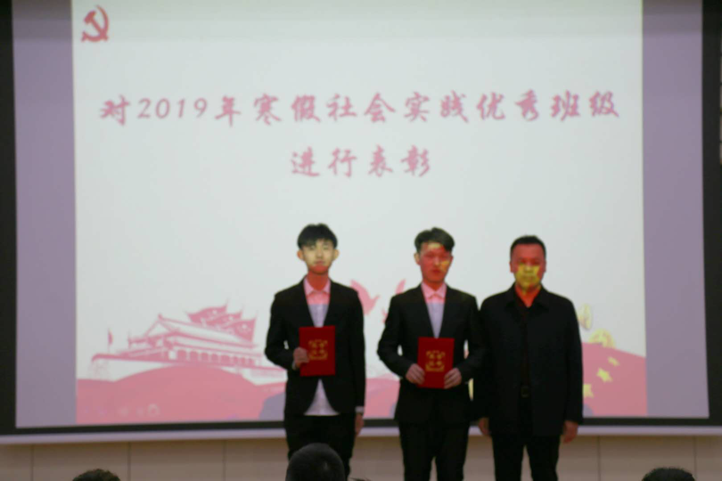 接着公司对2019年寒假社会实践班级进行了表彰,由范庆文书记、李庚老师和曹馨月老师为获奖班级颁发了证书。