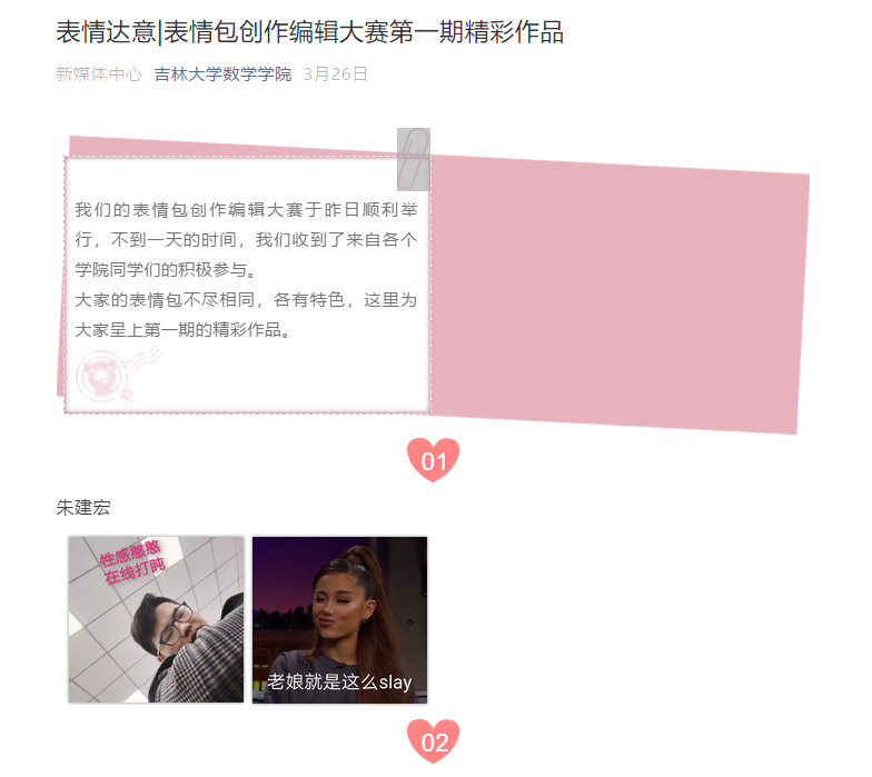 随着同学们线上交流愈发频繁,社交软件几乎是我们日常生活中不可缺少的工具,表情包不仅可以简短精悍的表达自己内心的想法,制作表情包更能激发同学们的智慧和语言天赋。此次表情包创作编辑大赛受到了同学们的广泛喜爱与一致好评,不仅是因为这次大赛具有挑战性和趣味性,更是因为在这次大赛轻松愉悦的氛围之下我们的互动更加融洽,关系更加亲密。