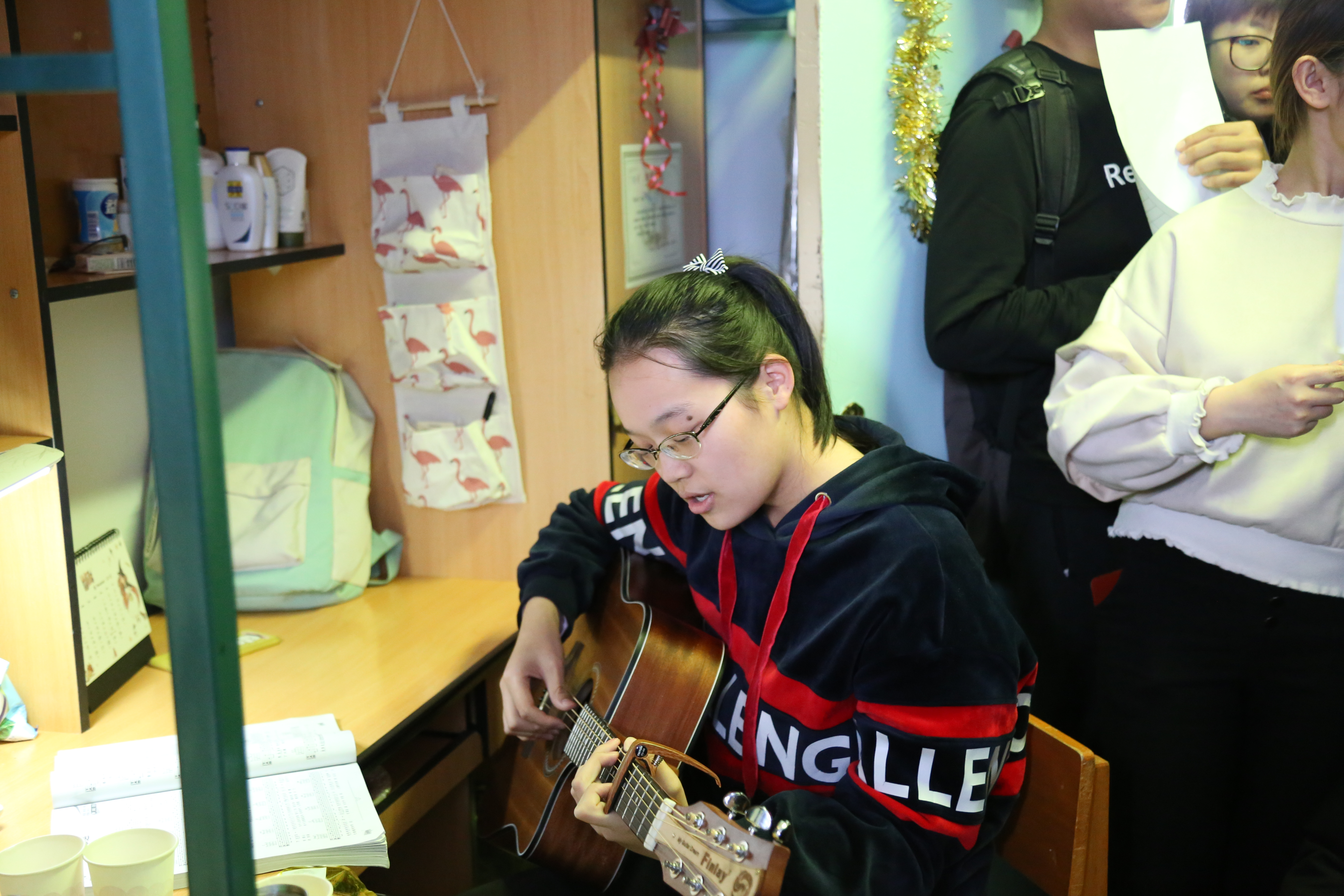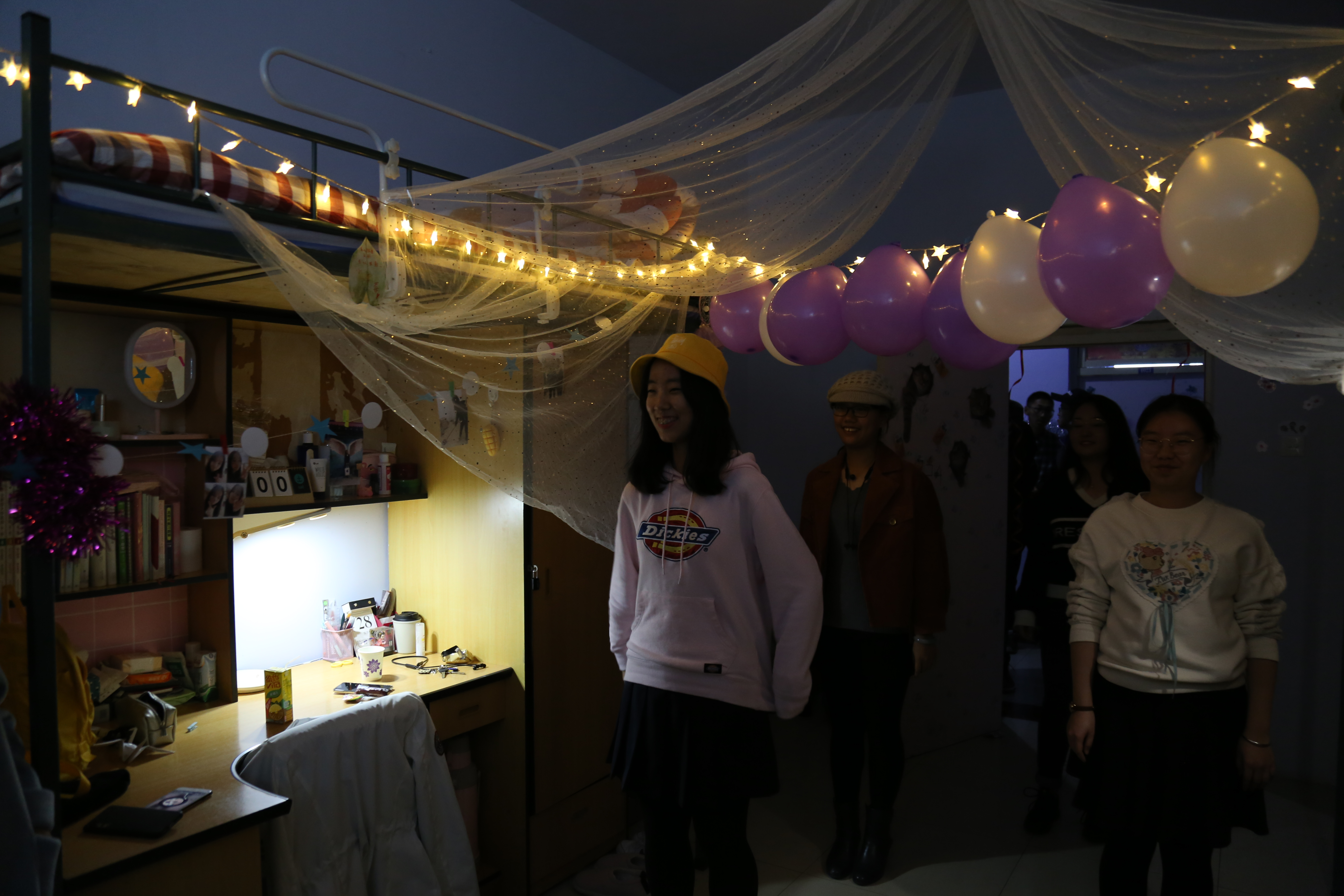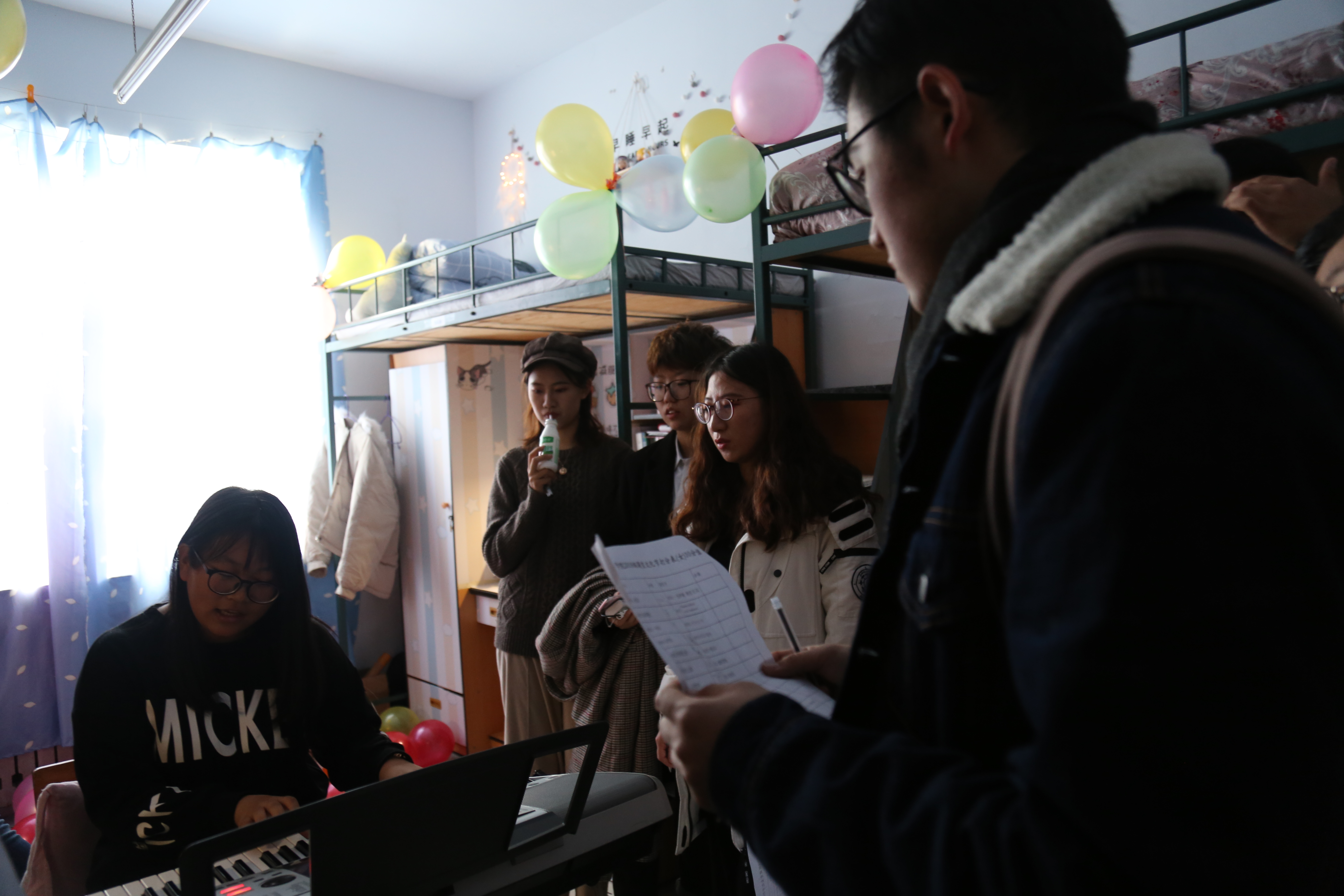 一至四楼走廊部分由员工会女生部负责,受到了各院女生的一致夸赞。18级女生寝室各具特色,装饰的十分用心,走廊内的照片墙记录了同学们开学以来的点点滴滴,每间寝室都制定了自己的小目标,并有了自己寝室独特的名字,想象力十分丰富。有的宿舍在走廊的墙面上放了一点糖果,给大家品尝;有的宿舍装饰成了城堡,十分梦幻。活动现场气氛非常热闹,男女生联谊表演节目,弹电子琴、唱歌、跳舞等,十分精彩,大家都兴致盎然。