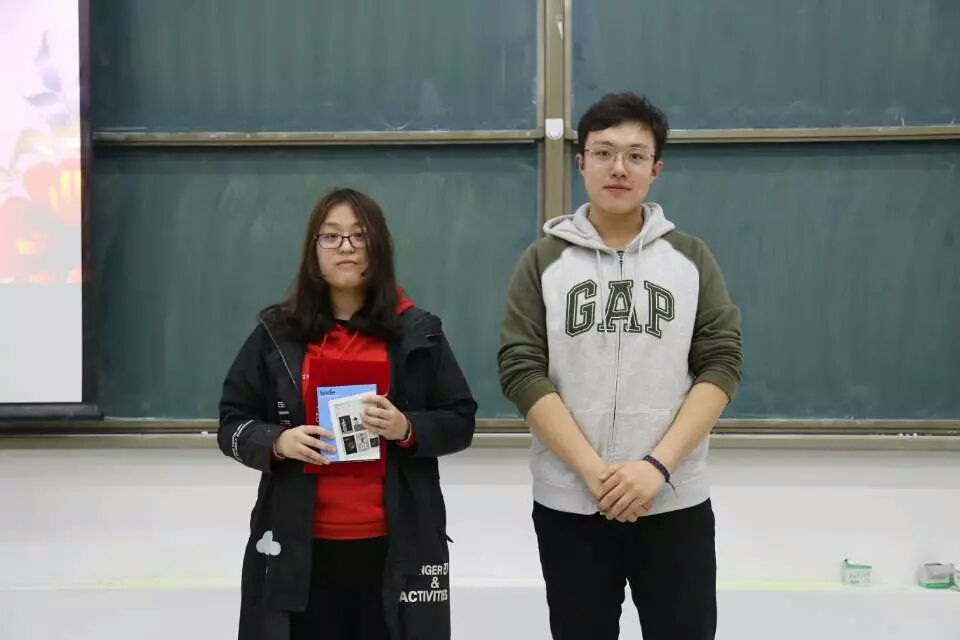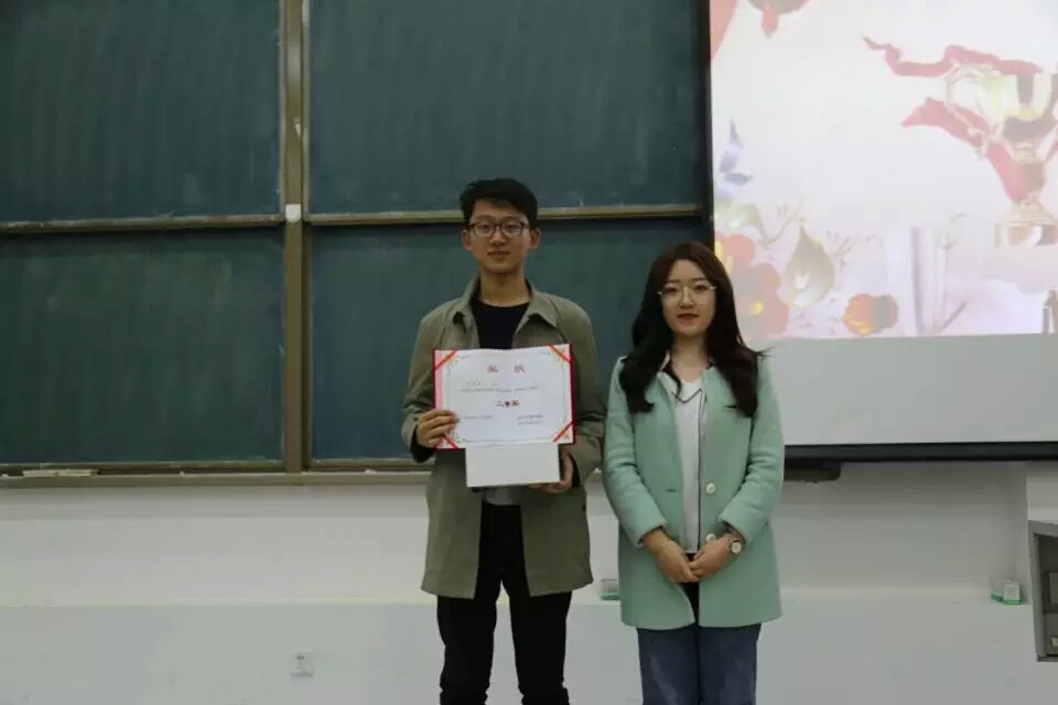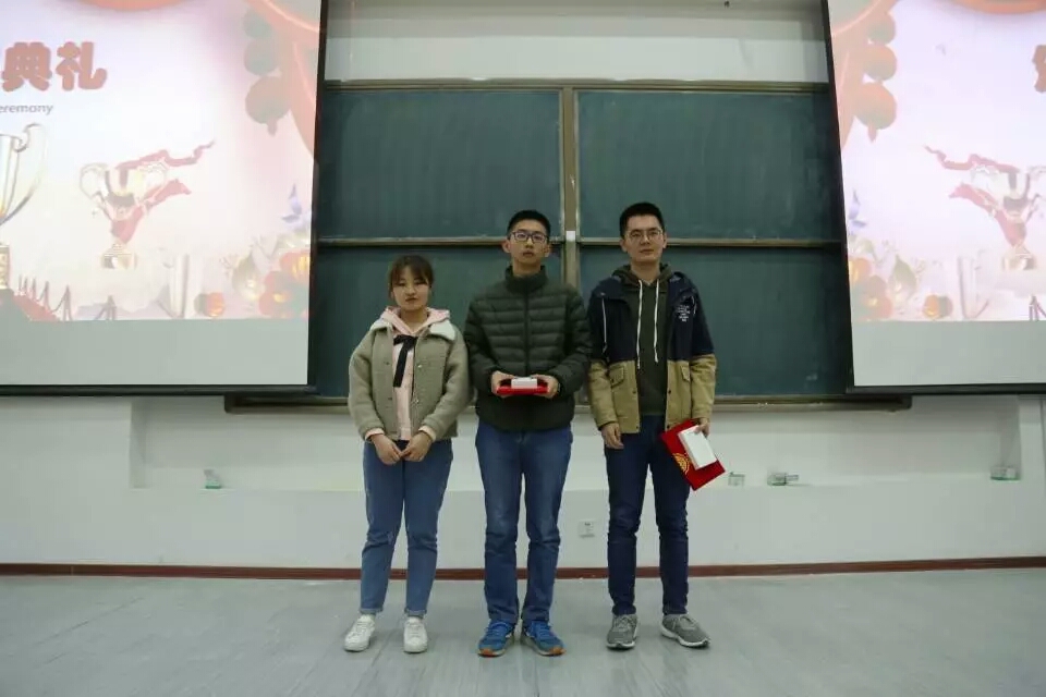 本次比赛参赛选手讲课风格各具特色,有的同学举例丰富、贴近生活,有的同学慢条斯理,从容不迫,有的同学随性恣意,别具一格;讲课内容亦是五花八门,数学分析,高等代数,空间解析几何,常微分方程等等,选手们思路清晰,表达清楚到位,并有自己的独到见解;讲课形式丰富多样,手写板书,板书或工整规范,或随性恣意;PPT辅助,PPT简洁明了,美观大方。讲台上的同学们神采奕奕,自信从容,大方得体,颇具老师风范。讲台下的观众亦是全神贯注,仔细聆听,收获颇丰。现场还设有趣味问答环节,同学们热情高涨,紧张思考,积极响应,纷纷举手回答问题。各位评委秉持着公平公正的原则为各位选手进行现场打分,评选出一等奖一名(17级马琰)、二等奖一名(18级吴岳霖)、三等奖两名(16级黄海涛 18级何易繁),分别由团委副书记郑旭东、团委副书记兼社联主席赵雯晗、新媒体中心主任兼员工会副主席王思梦为获奖选手颁奖。最后,各位评委,获奖选手及工作人员合影留念。至此,伟德国际1946讲课大赛完美落下帷幕。