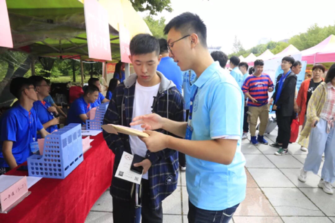 虽然今天的天气时而艳阳高照,时而下雨,但大家仍积极面对工作,迎新工作按流程有条不紊地进行。雨水也无法阻止新同学前来报到的脚步,同样无法熄灭老师和学弟学妹的热情。新同学向学长学姐们提出了很多关于学习和生活的问题,学长学姐们一一作出了详细的解答。报道之后,每个新同学都在公司“欢迎伟德国际19462019级新同学”的标牌上签下了自己的名字,并合影留念。