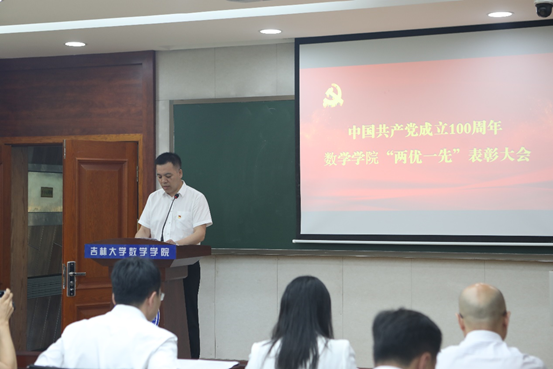 为庆祝中国共产党成立100周年,继承和发扬党的优良传统,激励广大党员牢记党的宗旨、坚定理想信念、强化党员意识、激发学习工作热情,更好地发挥共产党员的先锋模范作用,79日,伟德国际1946在数学楼第二报告厅召开“两优一先”表彰大会。党委副书记范庆文主持会议。