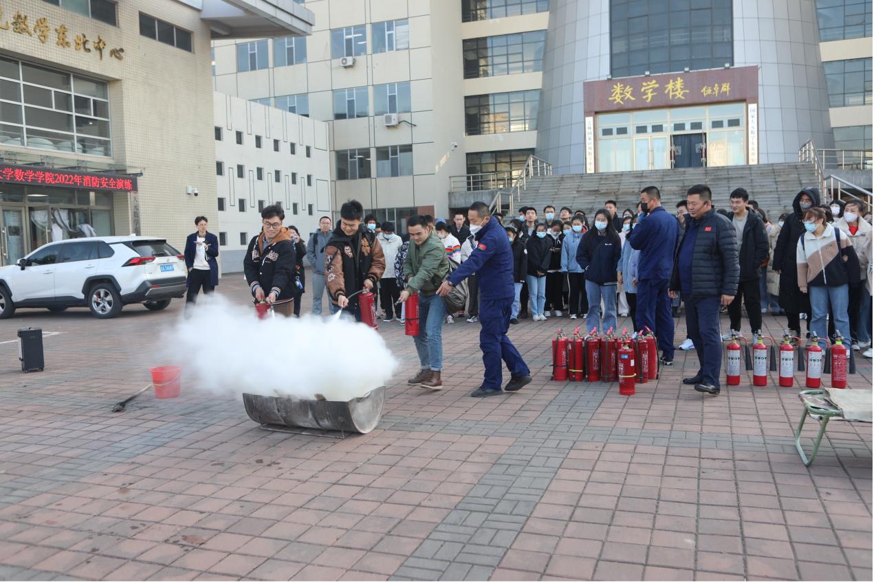 随即在保卫处工作人员的组织下,全体师生开展了应急疏散演练活动,整个应急疏散演练活动以数学楼内突发火情为背景,全景演练了突发火情后全楼师生紧急疏散撤离、消防队员灭火等流程。董立明老师还就干粉灭火器、二氧化碳灭火器、灭火毯的灭火特点、日常维护及使用操作中应注意的问题做了详细的说明,并现场指导部分师生进行灭火实操演练。演练过程中,全院师生展现了快速反应的能力,演练达到了预期的目标。