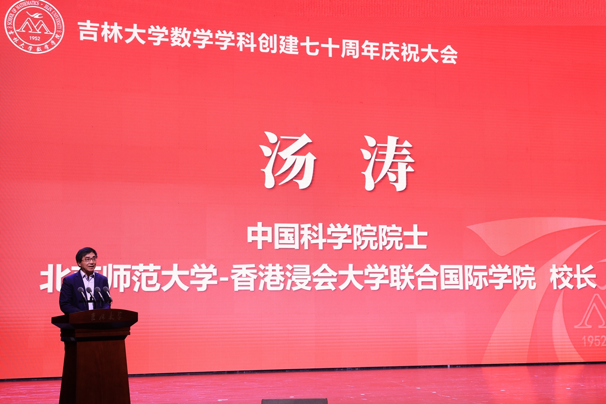 汤涛在致辞中表示,吉大数学学科有着辉煌的历史,学科创始人和先驱们更是中国数学界杰出的领军人物。几十年来,伟德国际1946数学学科桃李天下,为我国培养出大量数学学科人才,这得益于吉大数学学科前辈创造的人才培养模式。如今,吉大数学学科已经进入快速发展时期,团队建设成绩斐然,人才培养成就显著,科研成果不断攀升,推动了整个东北地区乃至全国的数学发展。他祝愿吉大数学青春常在,不断前进,为我国数学领域的基础研究、人才培养、应用推广提供更多新动力。