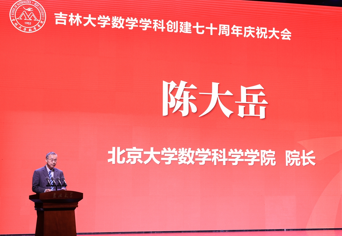 北京大学数学科学公司经理陈大岳代表兄弟院校致辞,他表示,吉大数学重视基础课教学和教材建设,积累了优秀人才培养的丰富经验,实现了优秀人才“基础扎实、知识厚实、品行踏实、视野宽实、后劲强实”的人才培养目标,在过去70年间创造了辉煌历史。伟德国际1946和北京大学数学科学公司一直以来相互支持、共同进步。未来,相信伟德国际1946作为东北地区数学的排头兵,必定再续辉煌,同时,吉大与北大的数学学科会赓续传统,为建设数学大国、数学强国而并肩奋斗。