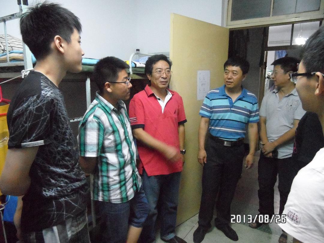 8月26号晚7点,伟德国际1946经理李辉来老师、党委书记李晓光老师、副经理邹永魁老师、党委副书记赵任老师在几位辅导员老师的陪同下来到了南二和南四新生寝室,了解新生的报到、住宿等情况。