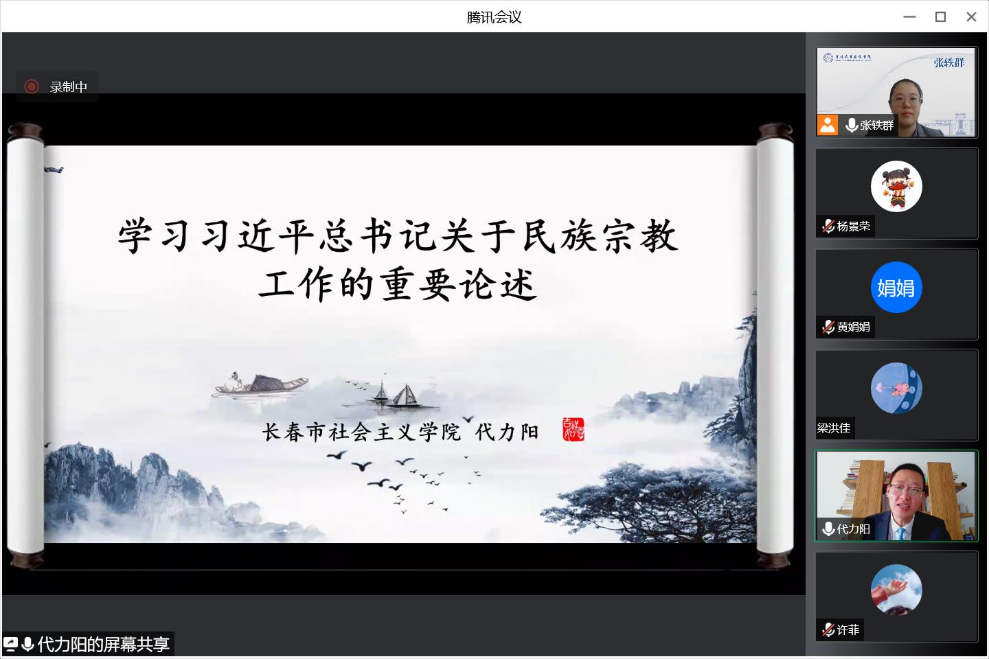 为加强研究生对党的民族宗教政策和法律法规知识的学习教育,提高研究生的民族宗教意识和遵法守法意识,9月23日,伟德国际1946邀请长春市社会主义公司代力阳老师在线开展了宗教政策宣讲教育讲座。本次讲座由公司研究生辅导员张轶群老师主持,2022级全体研究生参加。