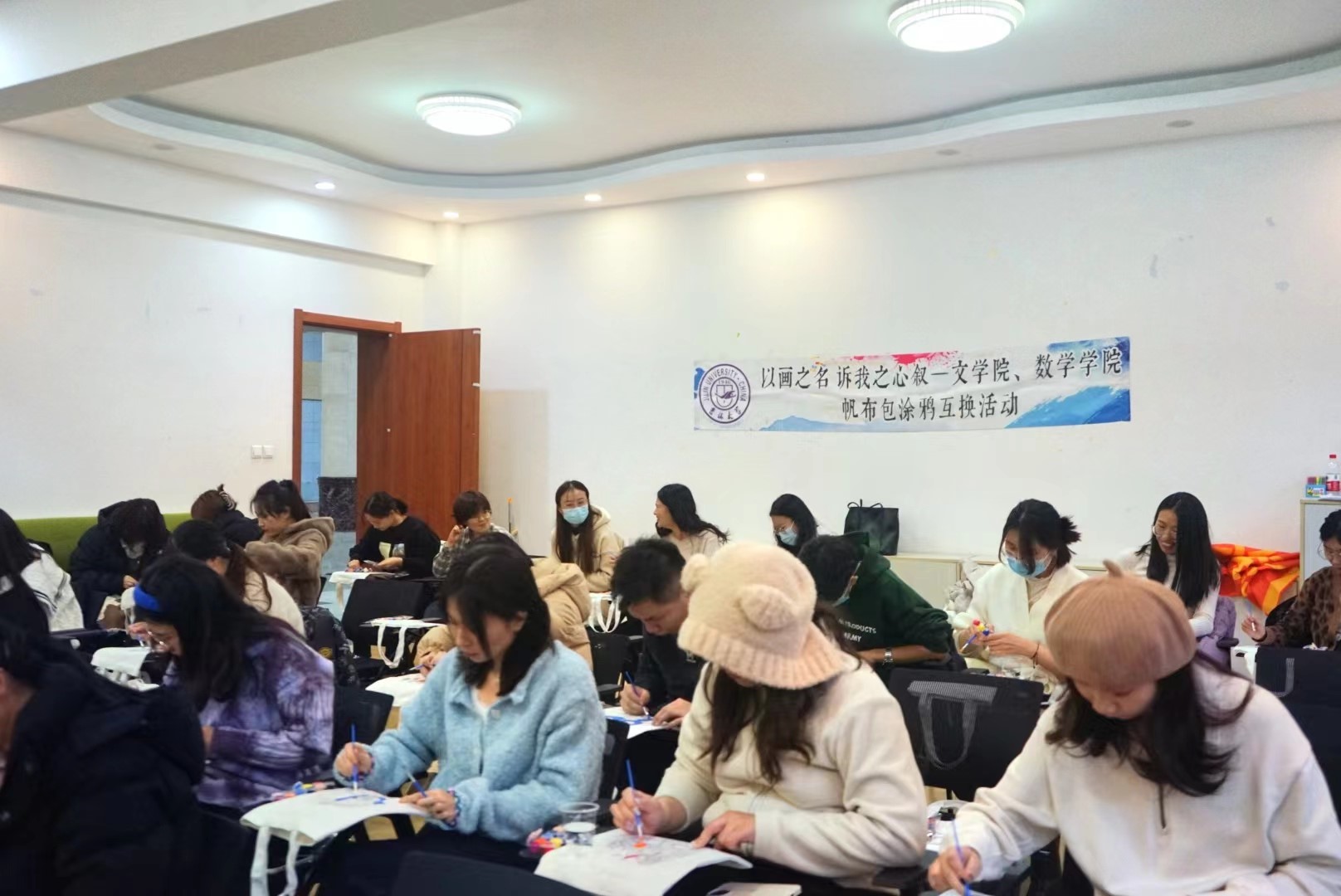 11月13日下午4点活动正式开始,第一个环节就是对帆布包进行DIY涂鸦与填色。活动一开始,大家各自挑选喜欢的帆布包图案,在听完讲解后,就开始耐心填涂颜色。在绘画中,同学们静下心,一笔一划的描绘出他们内心的感受。大家体验独特的帆布包涂鸦,享受艺术与生活碰撞的美丽。同学们一边画一边交流涂鸦心得,现场气氛其乐融融,一片欢声笑语。