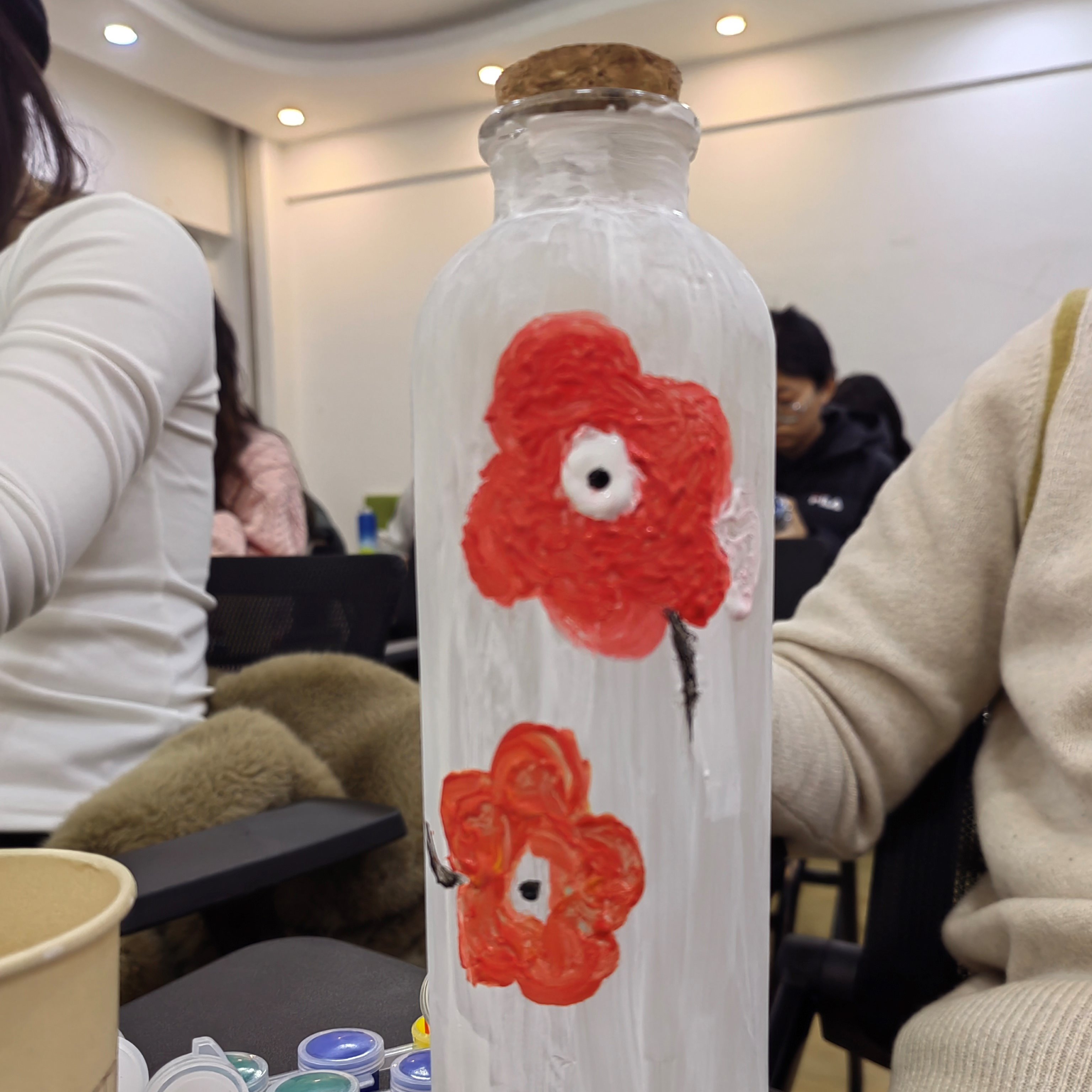 本次活动为同学们提供了一个独特的表达情感和交流思想的机会,活动过程充满了轻松与愉悦的氛围。在本次活动中,同学们以玻璃瓶为载体,在绘制色彩斑斓的画面的同时表达了深藏心底的真挚情感,共同谱写着我们校园生活中美好的一笔。