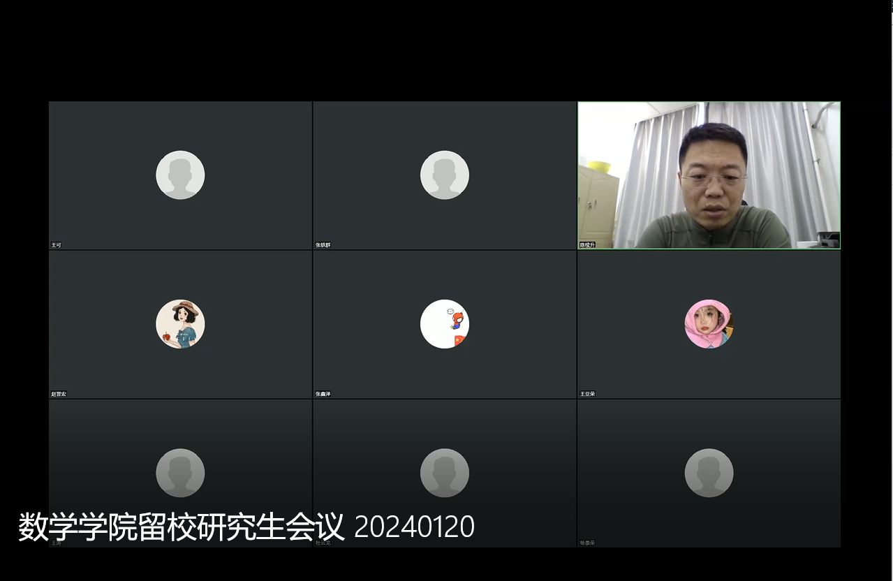1月20日下午13点30分,伟德国际1946留校研究生工作会通过腾讯会议线上召开。会议由伟德国际1946党委副书记陈续升主持,研究生辅导员张轶群及全体留校研究生参加了会议。会上,陈续升副书记对留校研究生的学习、生活情况进行了关心慰问,并对研究生留校期间寝室消防安全再次进行了重点督促,对留校研究生合寝及寝室楼管理工作逐一做了解释说明。辅导员张轶群再次强调了留校申请办理、合寝居住要求、离返校注意事项等相关内容。