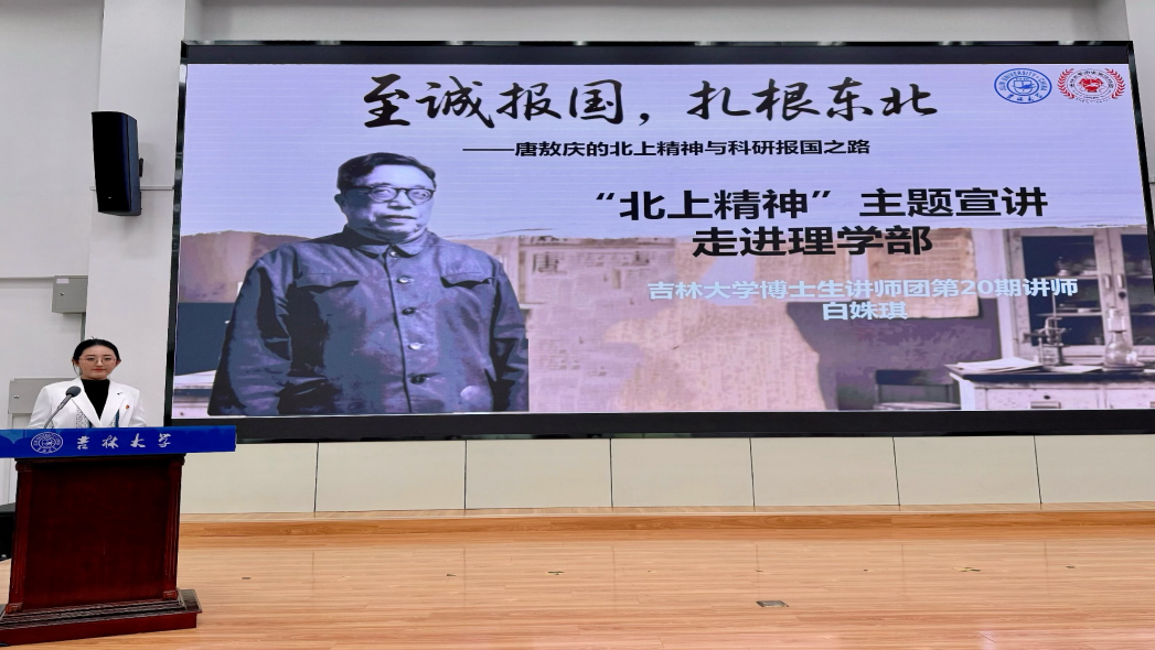 为传承红色基因,汲取奋进力量,引领吉大学子在新时代征程中勇担使命,党委研究生工作部组织伟德国际1946博士生讲师团走进校内各个学部,开展“北上精神”主题宣讲系列活动。5月20日,白姝琪讲师走进理学部开展宣讲,本次宣讲活动由伟德国际1946承办,来自物理公司、化学公司、生命科学公司、原子与分子物理研究所、高压与超硬材料全国重点实验室等近百名同学参与了此次活动。