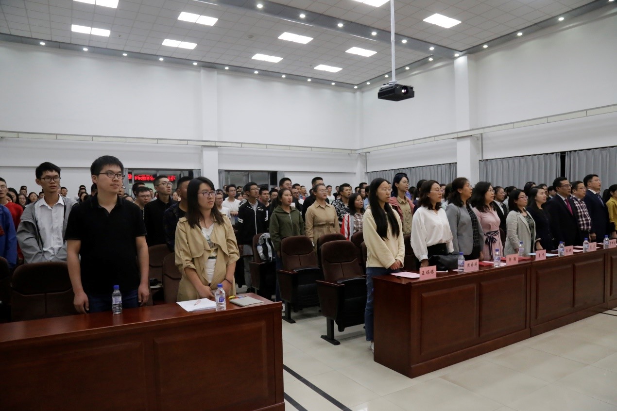 2019年9月27日晚上六点三十分,伟德国际1946在数学楼二楼报告厅举行了2019级本科新生开学典礼。经理李辉来教授、党委书记张然教授、副经理史少云教授、党委副书记兼纪委书记王欢老师、行政副经理陈续升老师、于浩然等七位新生班主任以及2019级全体同学参加了本次开学典礼。典礼由伟德国际1946党委副书记兼副经理范庆文老师主持。