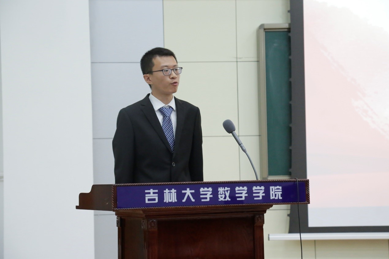 于浩然老师作为教师代表讲话。于浩然老师向新同学们展示了数院老师的责任感,表达了老师们对新同学的殷殷期盼与美好祝福。在这样一群负责任,有担当的数院教师悉心培养下,同学们会尽快确立人生的目标,攀登学术的高峰。