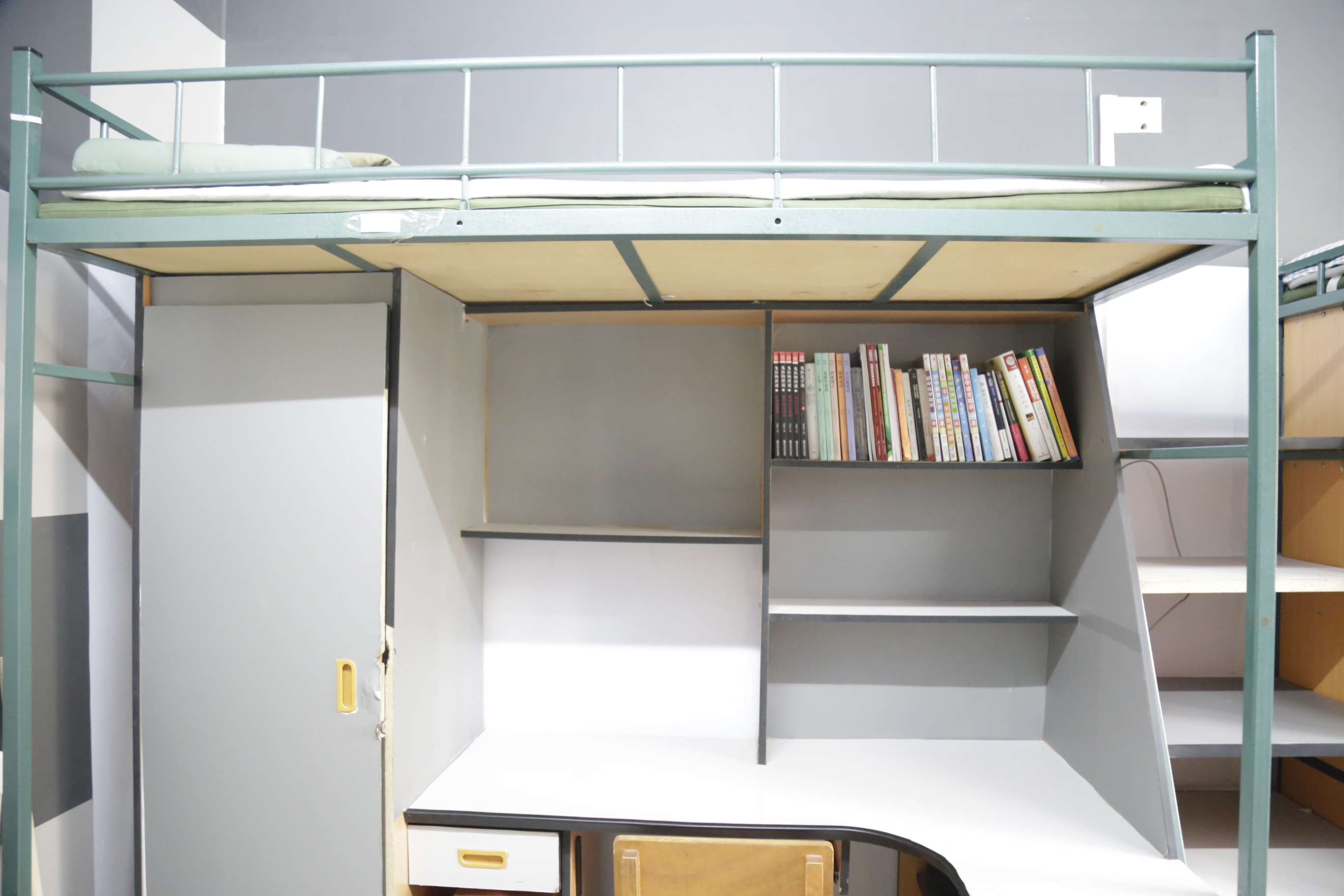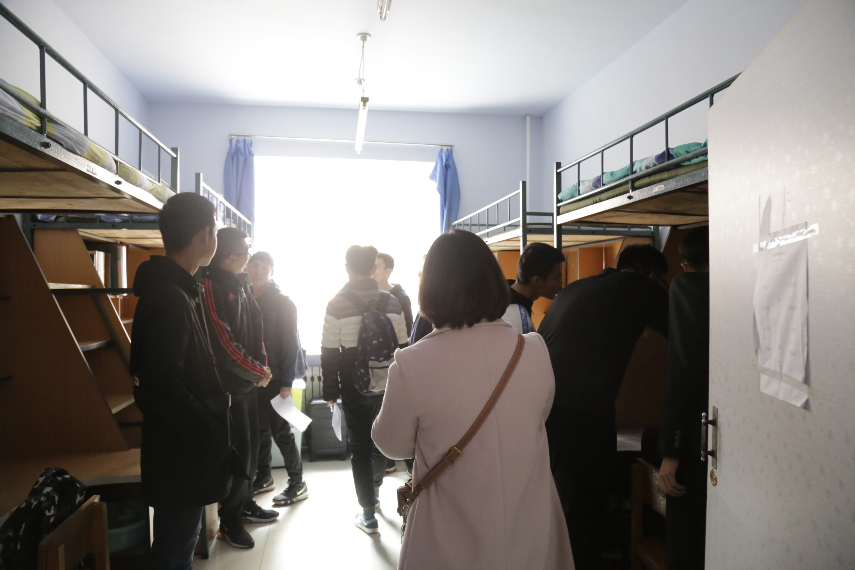最先检查的是男生寝室。虽然平时男生们都大大方方,但是在寝室卫生方面却注重每一处细节,丝毫不马虎了事。屋里屋外、走道窗台、桌面楼梯都擦得干干净净、一尘不染。