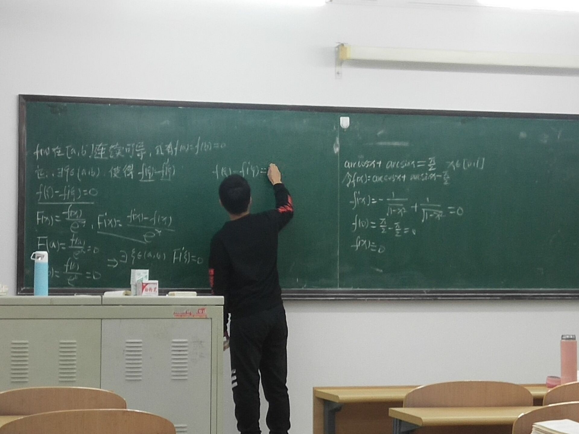 首先,陈浩同学为大家疏理了三个中值定理及其推论,洛必达法则以及Taylor公式。对整个知识框架做了完整的概括,由表及里,由浅入深,带领大家逐步探索这一版块的内容。随后,蔡云湖和杜云龙同学分别对中值定理和Taylor公式的习题进行讲解,通过几道具有代表性的例题总结了各种题型的解题方法及技巧,加强了同学们对定理及公式的掌握以及应用。