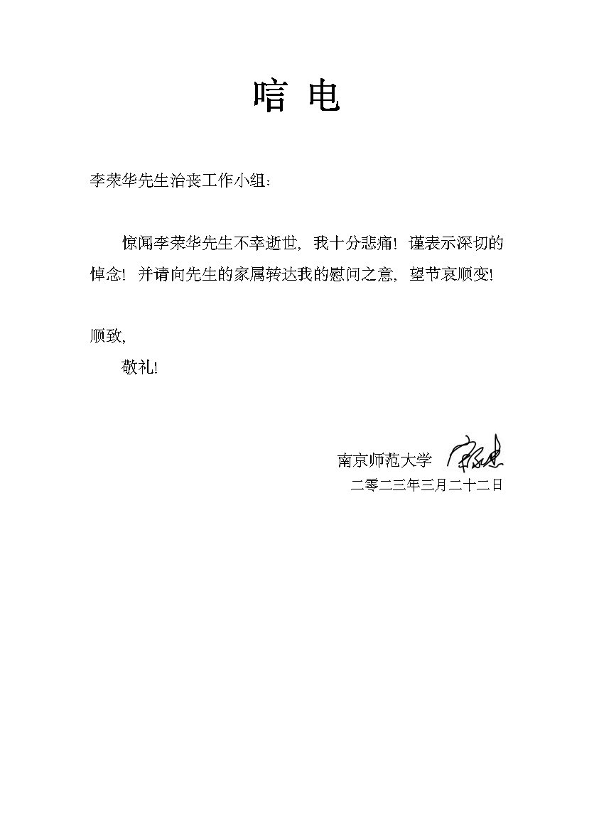 南京师范大学数学科学公司唁电